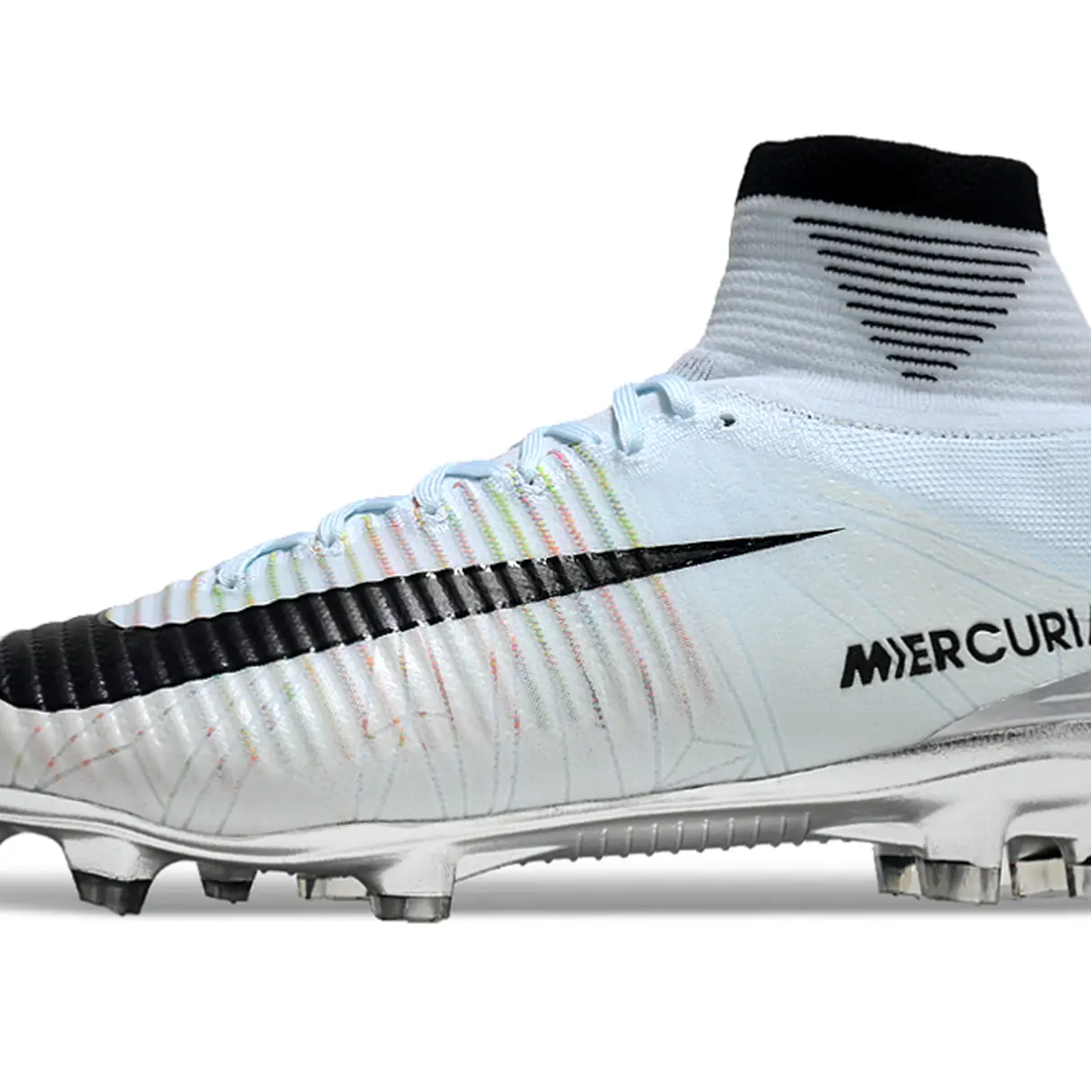 A Nike Mercurial Superfly 5 Retrô volta em grande estilo com esse visual azul e prata, relembrando uma das gerações mais icônicas da linha Mercurial. Feita para quem valoriza desempenho explosivo e visual clássico.