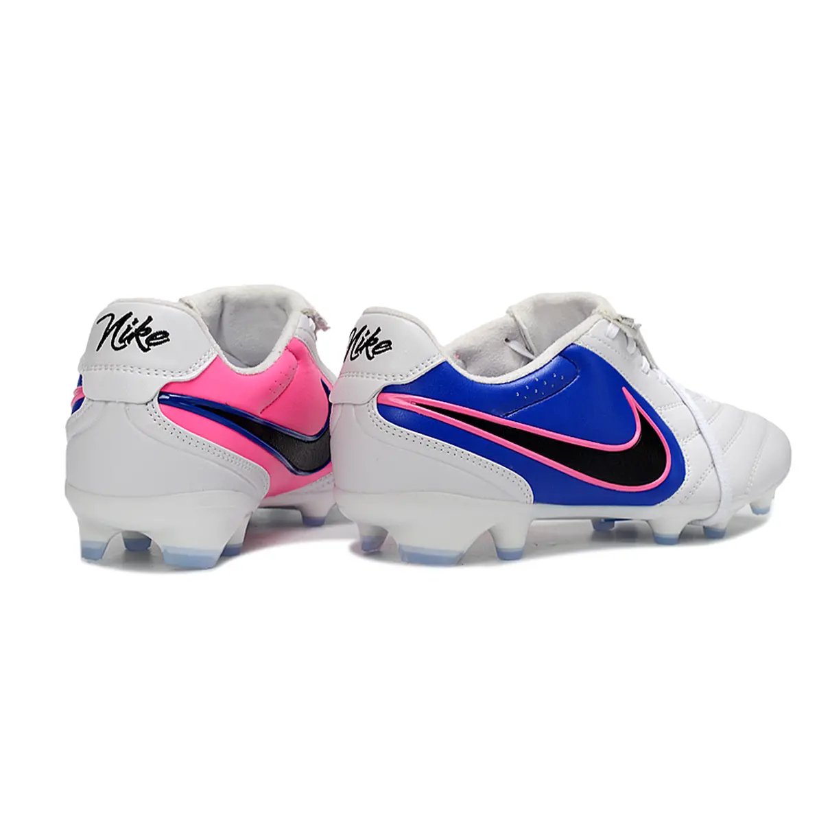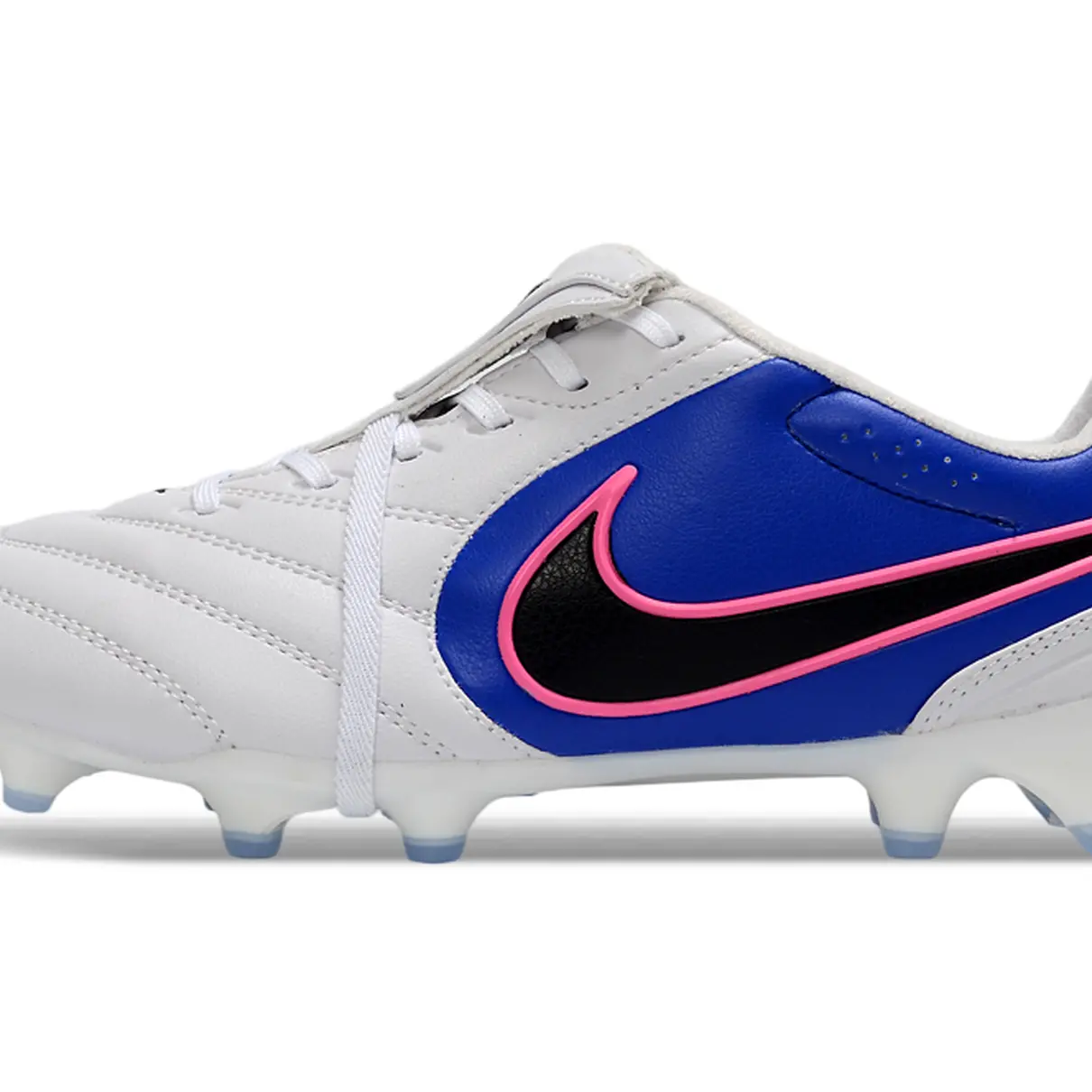 Chuteira Campo Nike Tiempo Maestro Elite FG Branco, Azul e Rosa