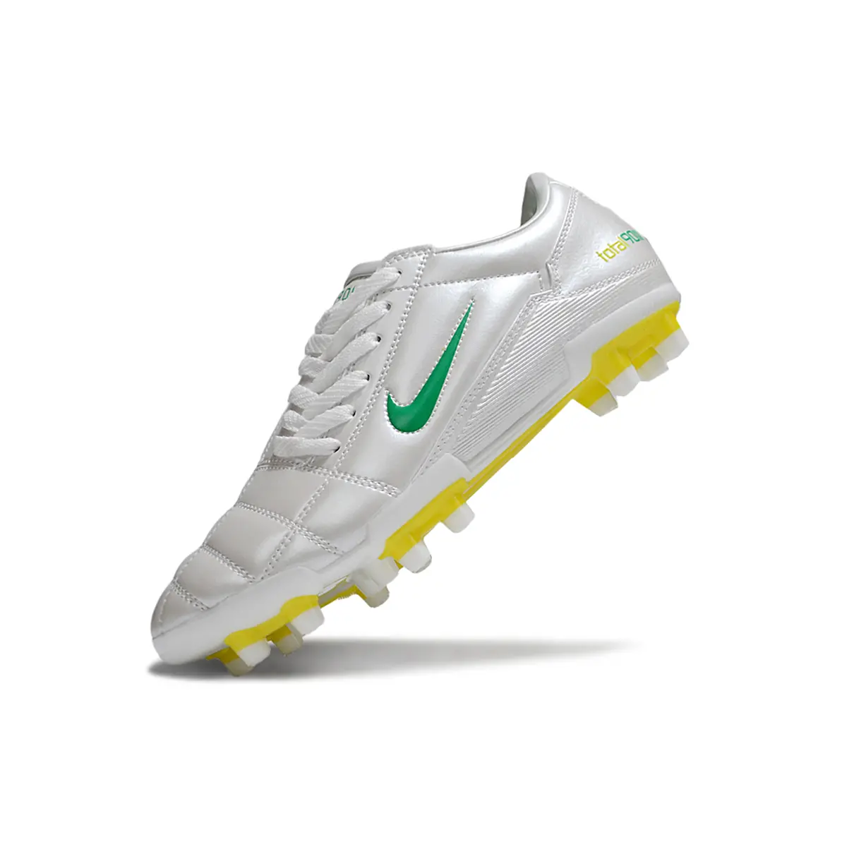 A lenda está de volta aos gramados! A Nike Total 90 FG ressurge com seu visual icônico, combinando branco, amarelo e verde — cores que remetem à ousadia e à criatividade do futebol arte.
