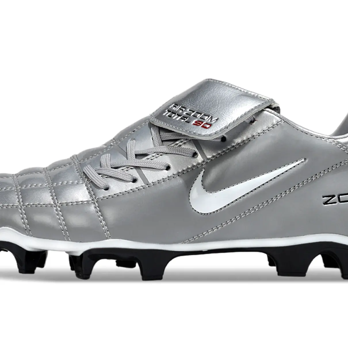 A icônica Nike Total 90 retorna em grande estilo com uma combinação elegante de cinza e branco, perfeita para quem valoriza a história do futebol com um toque de modernidade.