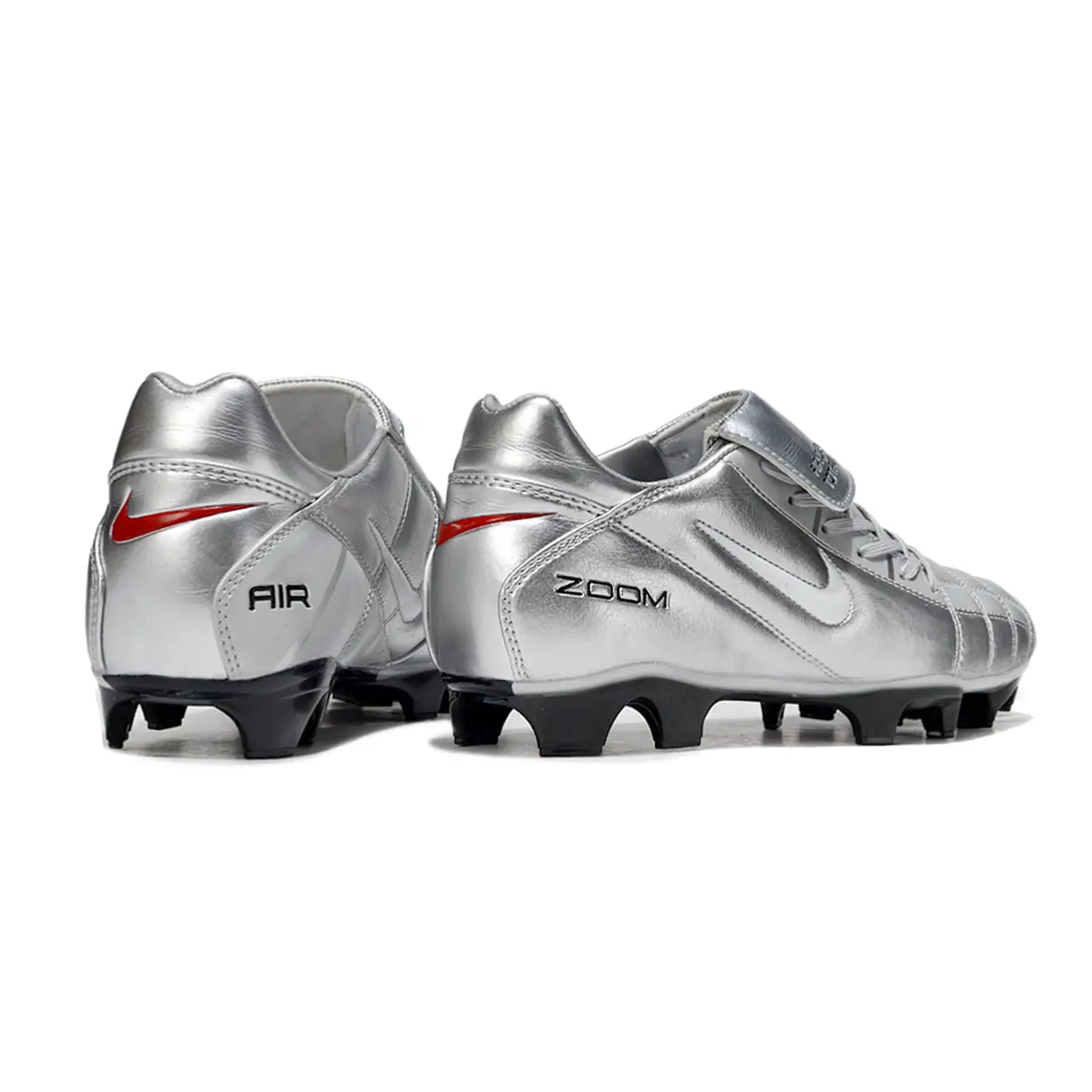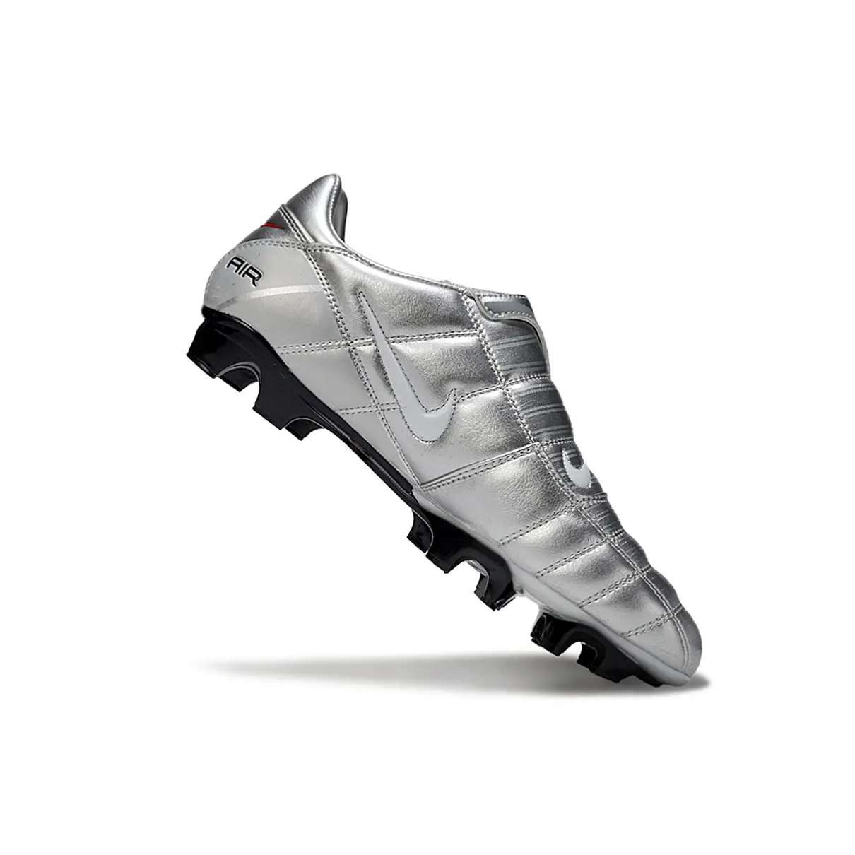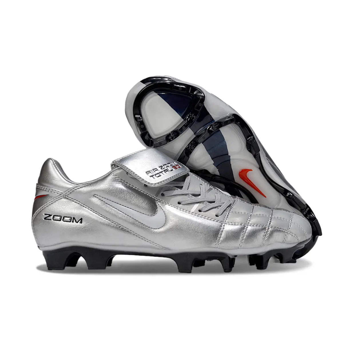 A Nike Total 90 ressurge com um visual poderoso em prata, branco, vermelho e preto, unindo nostalgia com performance moderna. Ideal para quem quer jogar com atitude e estilo, como nos velhos tempos — mas com tecnologia atual.