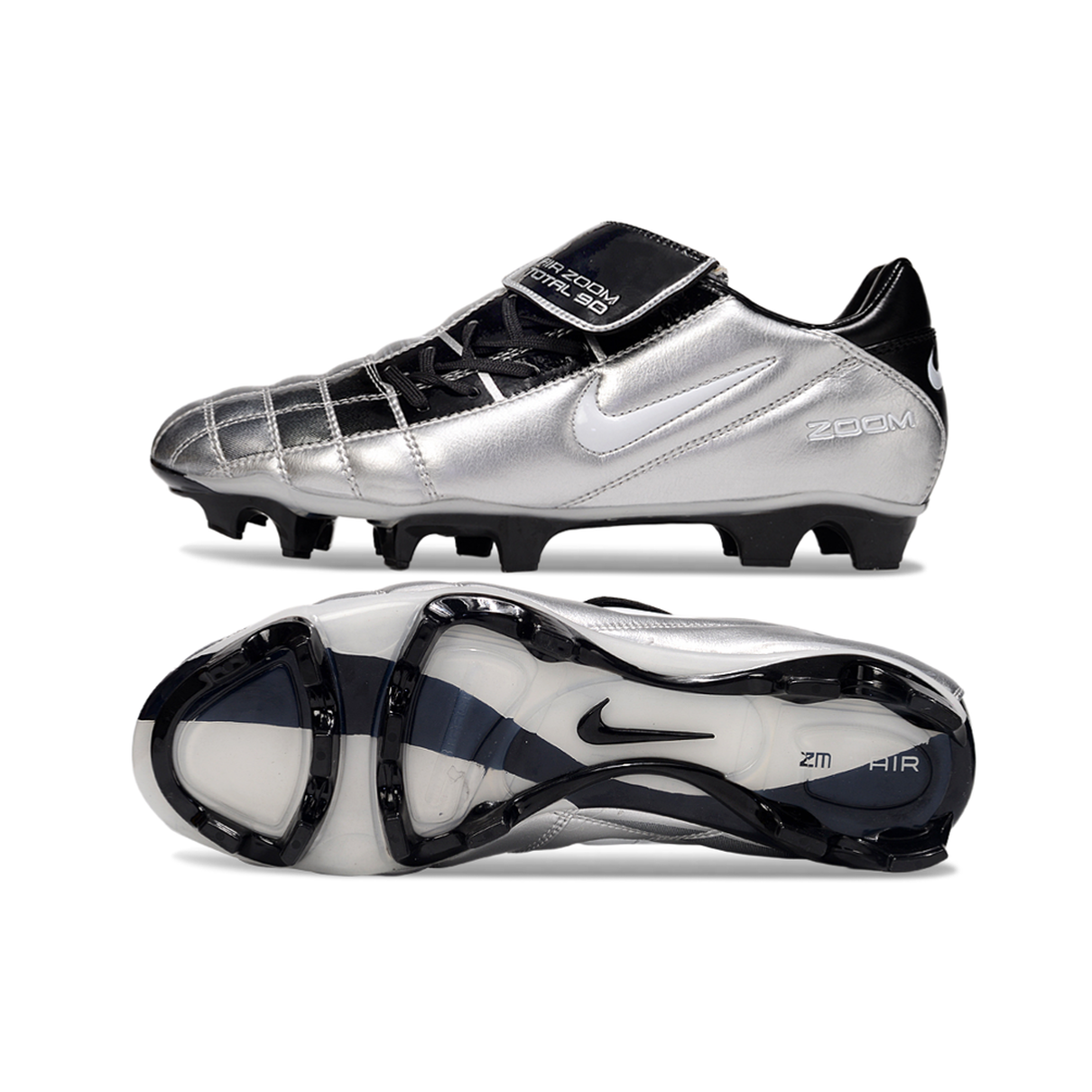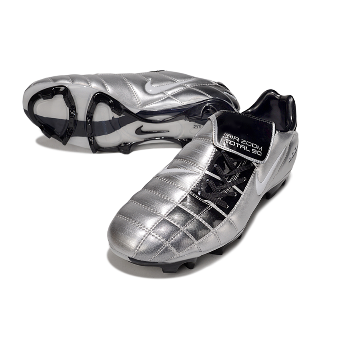 Ícone dos anos 2000, a Nike Total 90 FG retorna com força total em uma versão que une nostalgia, estilo e desempenho moderno. A edição Prata e Preto é um verdadeiro clássico reimaginado, ideal para quem valoriza presença em campo e performance sólida em gramados naturais.