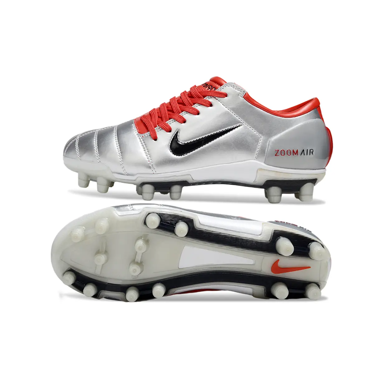 Chuteira Campo Nike Total 90 FG Prata e Vermelho - Pronta Entrega