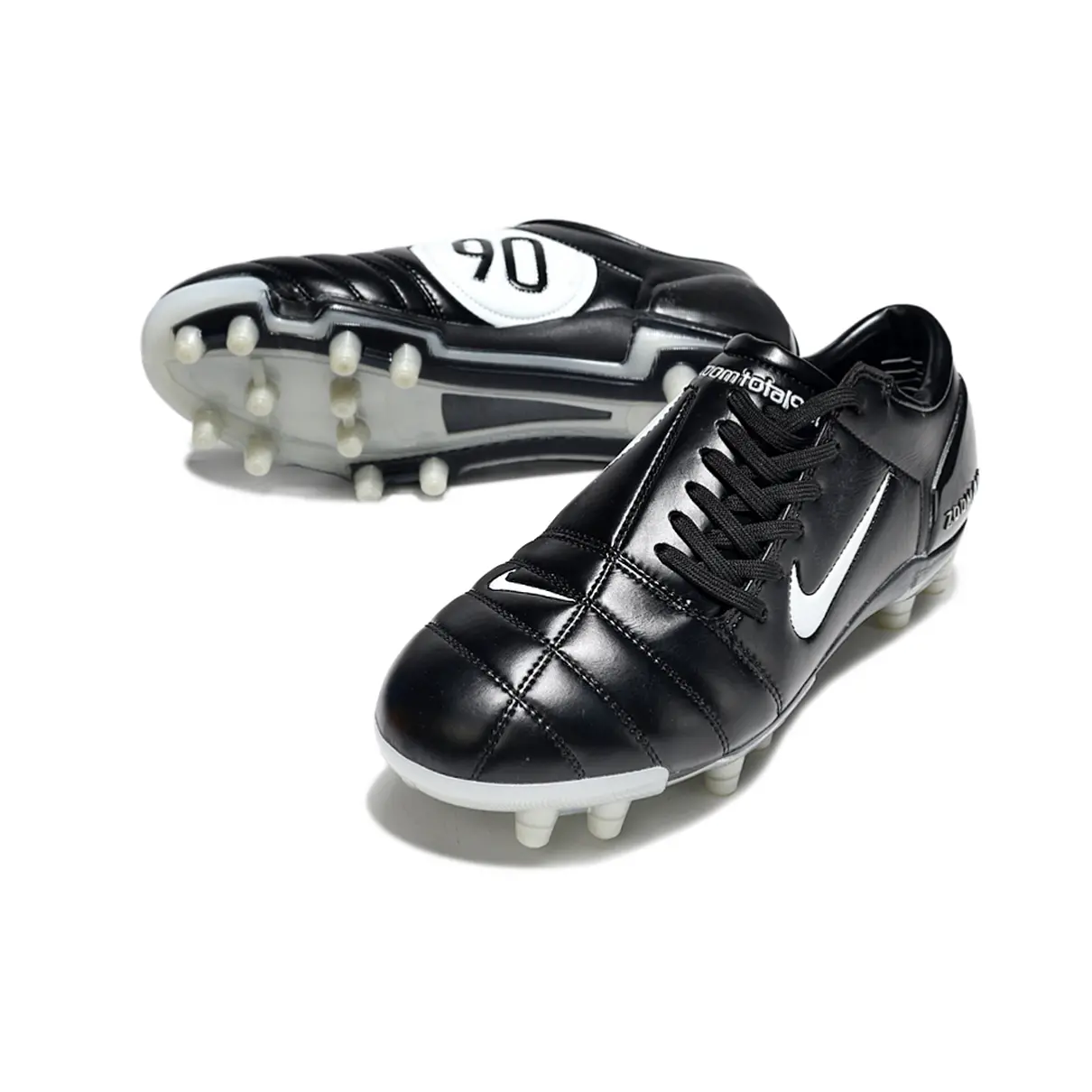 A Nike Total 90 FG Preta e Bege combina um visual retrô elegante com performance clássica. O cabedal em preto profundo transmite imponência e seriedade, enquanto os detalhes em bege trazem sofisticação ao design, criando uma estética vintage que remete às chuteiras consagradas do início dos anos 2000.
