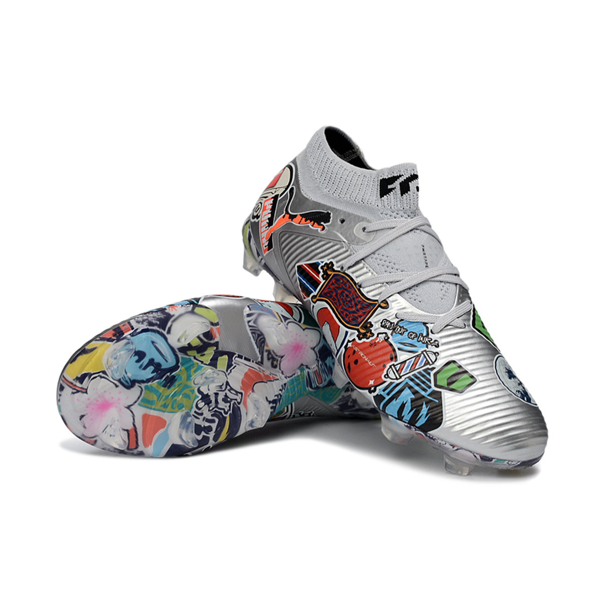 O solado FG (Firm Ground) conta com travas estrategicamente posicionadas para tração eficaz e aceleração. Com acabamento prateado, o modelo une um visual futurista e sofisticado com a tecnologia necessária para jogadores que buscam desempenho elevado em campo.