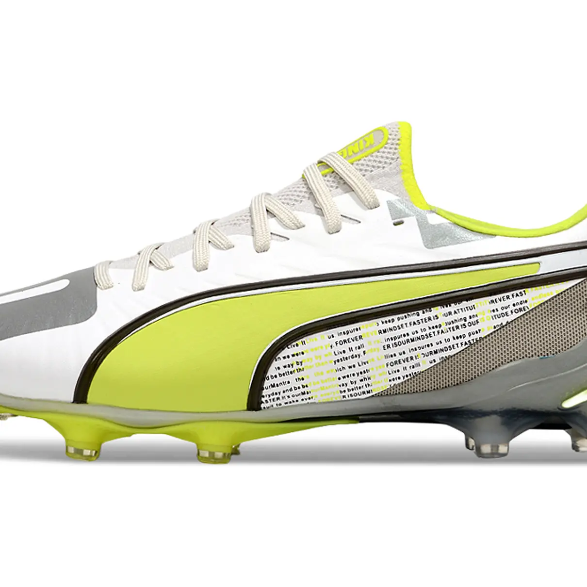 A lendária Puma King retorna em sua versão mais moderna: a King Ultimate FG “Forever” – Prata e Amarelo. Um verdadeiro símbolo de tradição reinventado com tecnologia de ponta, combinando estilo, conforto e performance em alto nível para os gramados naturais.