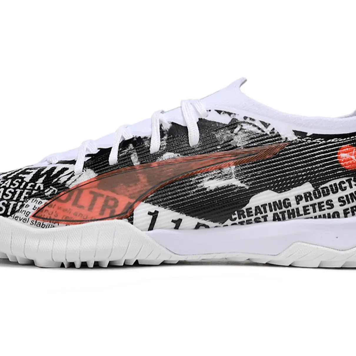 A Chuteira Society Puma Ultra 6 Ultimate TF é leve e projetada para agilidade e velocidade. O cabedal oferece bom ajuste e controle de bola, enquanto o solado TF garante tração em gramados sintéticos. Possui amortecimento em EVA e forro acolchoado para conforto. Ideal para society e superfícies sintéticas, combinando leveza, estabilidade e toque preciso da bola.