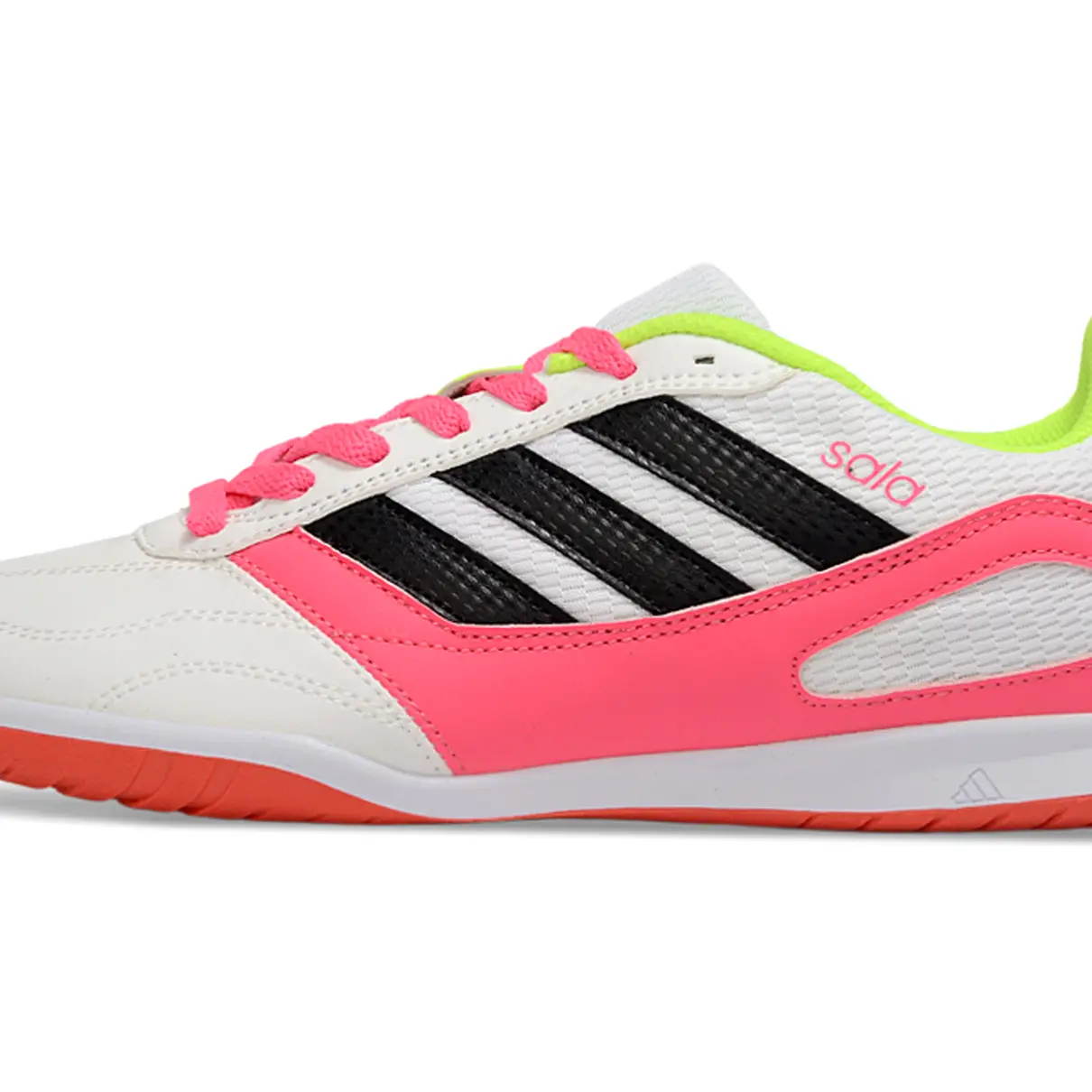 A Chuteira Futsal Adidas Top Sala IC Branco, Rosa, Verde e Preto é a escolha ideal para quem busca controle de bola, conforto e explosão de movimentos nas quadras indoor. Com um design moderno e cores vibrantes, ela entrega personalidade e desempenho para jogadores que gostam de ditar o ritmo do jogo.