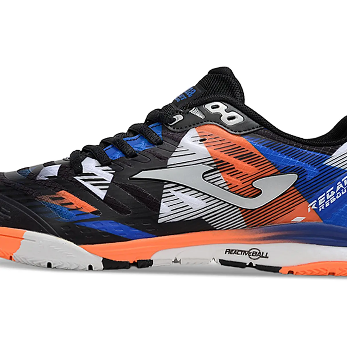 Chuteira Futsal Joma Regate Rebound IC Preta, Laranja e Azul