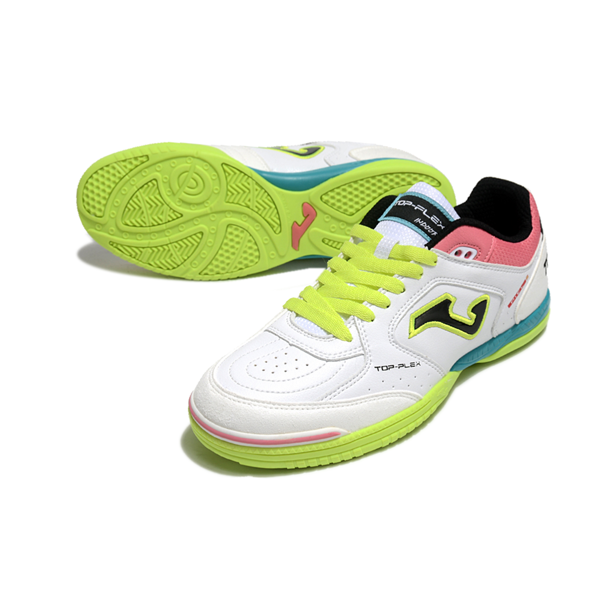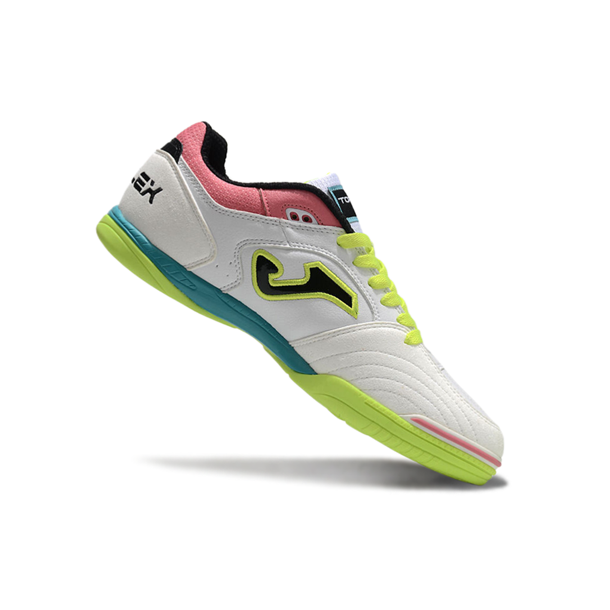 Chuteira Futsal Joma Top Flex Rebound IC Branca, Verde, Rosa e Azul
