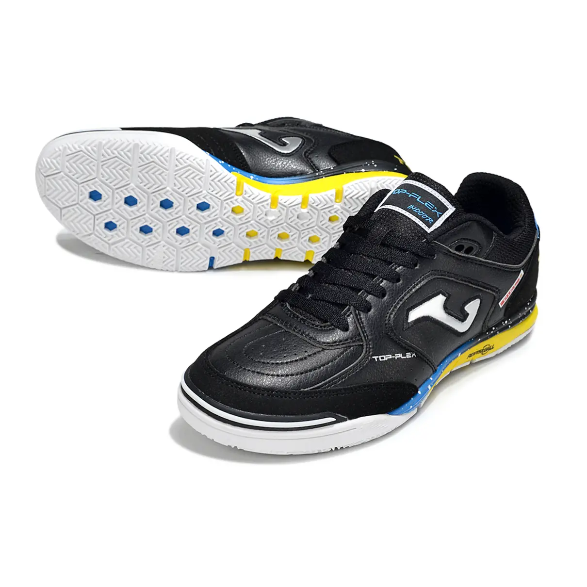 Chuteira Futsal Joma Top Flex Rebound IC Preto, Azul e Amarelo