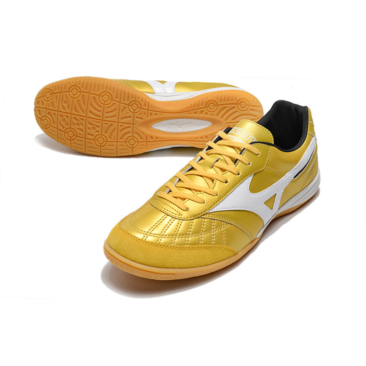 A chuteira Futsal Mizuno Morelia Sala IC em dourado é a combinação perfeita entre estilo e desempenho para os jogadores mais exigentes das quadras de futsal. Com o renomado padrão de qualidade da Mizuno, esta chuteira oferece conforto, durabilidade e um visual sofisticado que se destaca em qualquer partida.