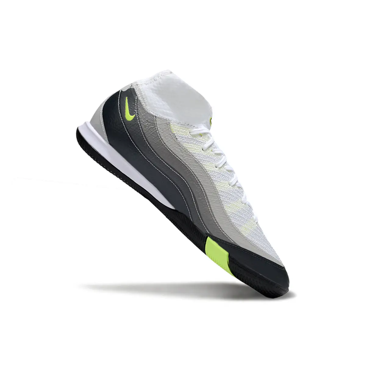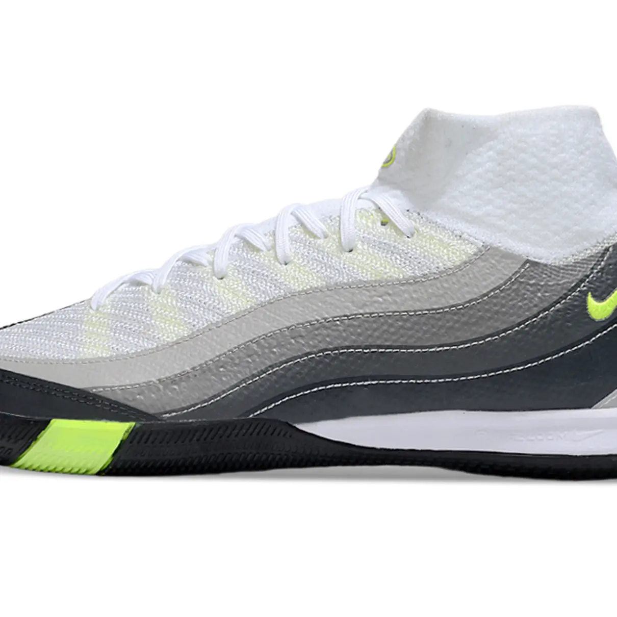 A Nike Air Zoom Mercurial Superfly 10 Elite IC chega com um visual imponente em branco, preto e verde ????????. Feita para quem joga em alta velocidade, ela traz o ajuste perfeito do colarinho Dynamic Fit e a tecnologia Zoom Air para respostas rápidas em cada passo.