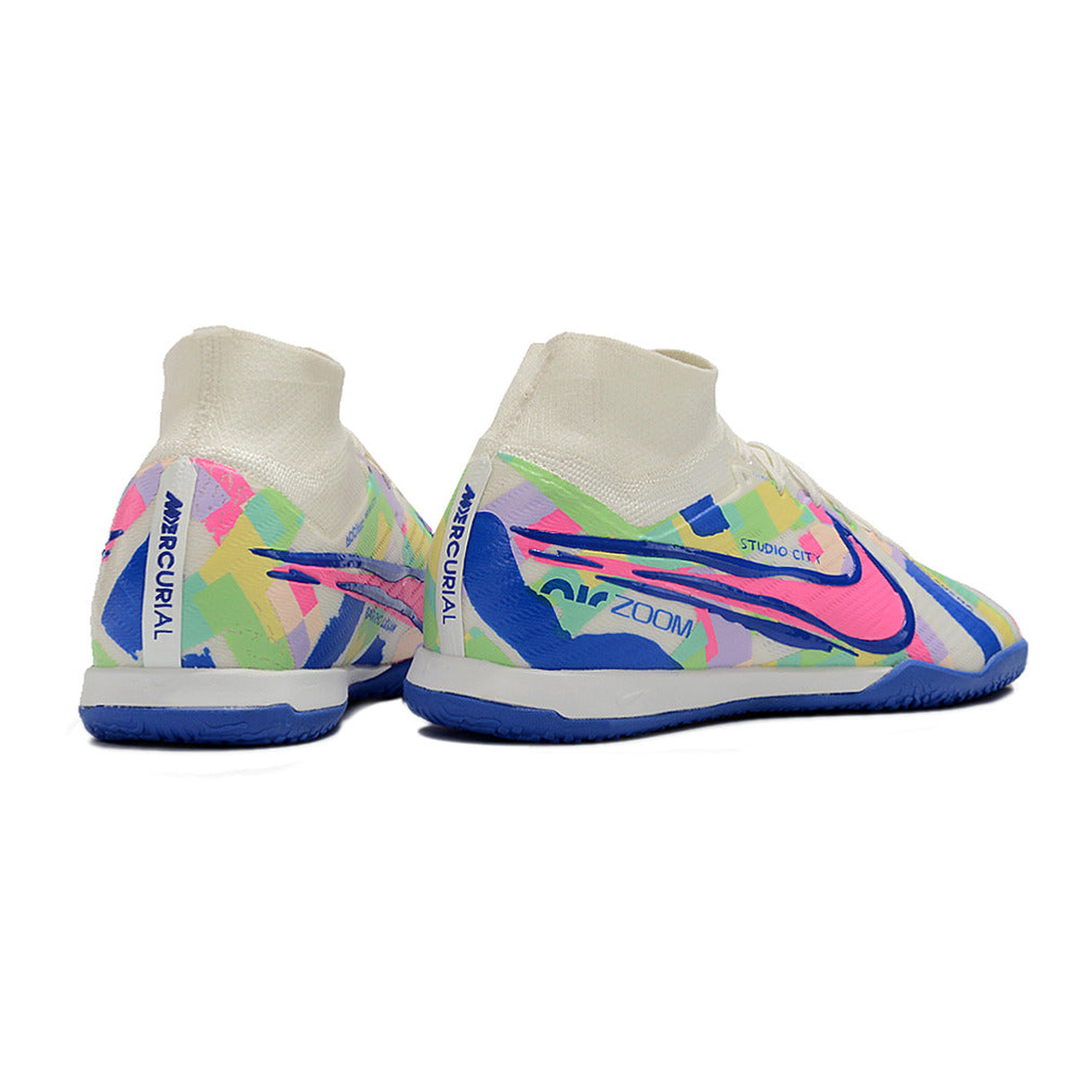 Chuteira Futsal Nike Air Zoom Mercurial Superfly 9 Elite IC Branca, Azul e Rosa "SoCal Pack"