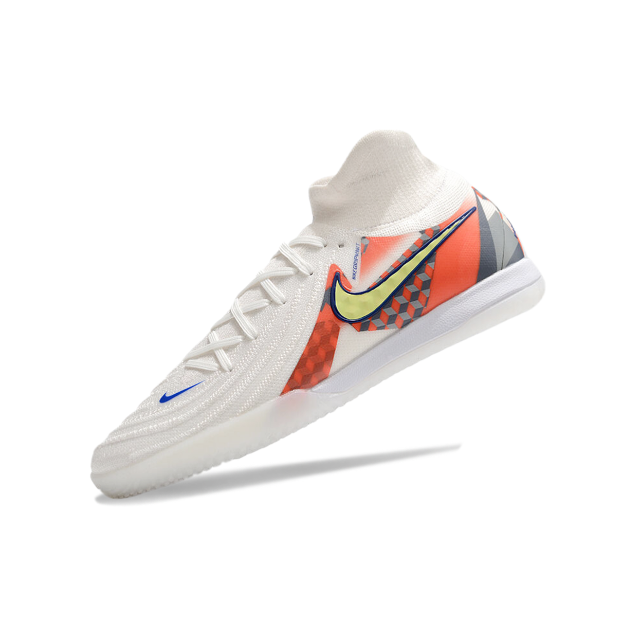 A chuteira de futsal Nike Phantom Luna Elite IC Branca e Vermelho "Barna Pack" é projetada para jogadores de futsal que procuram uma combinação de alta performance, conforto e um visual distinto. Esta chuteira apresenta as tecnologias avançadas da Nike e um design vibrante, adequado para jogos em quadra indoor.