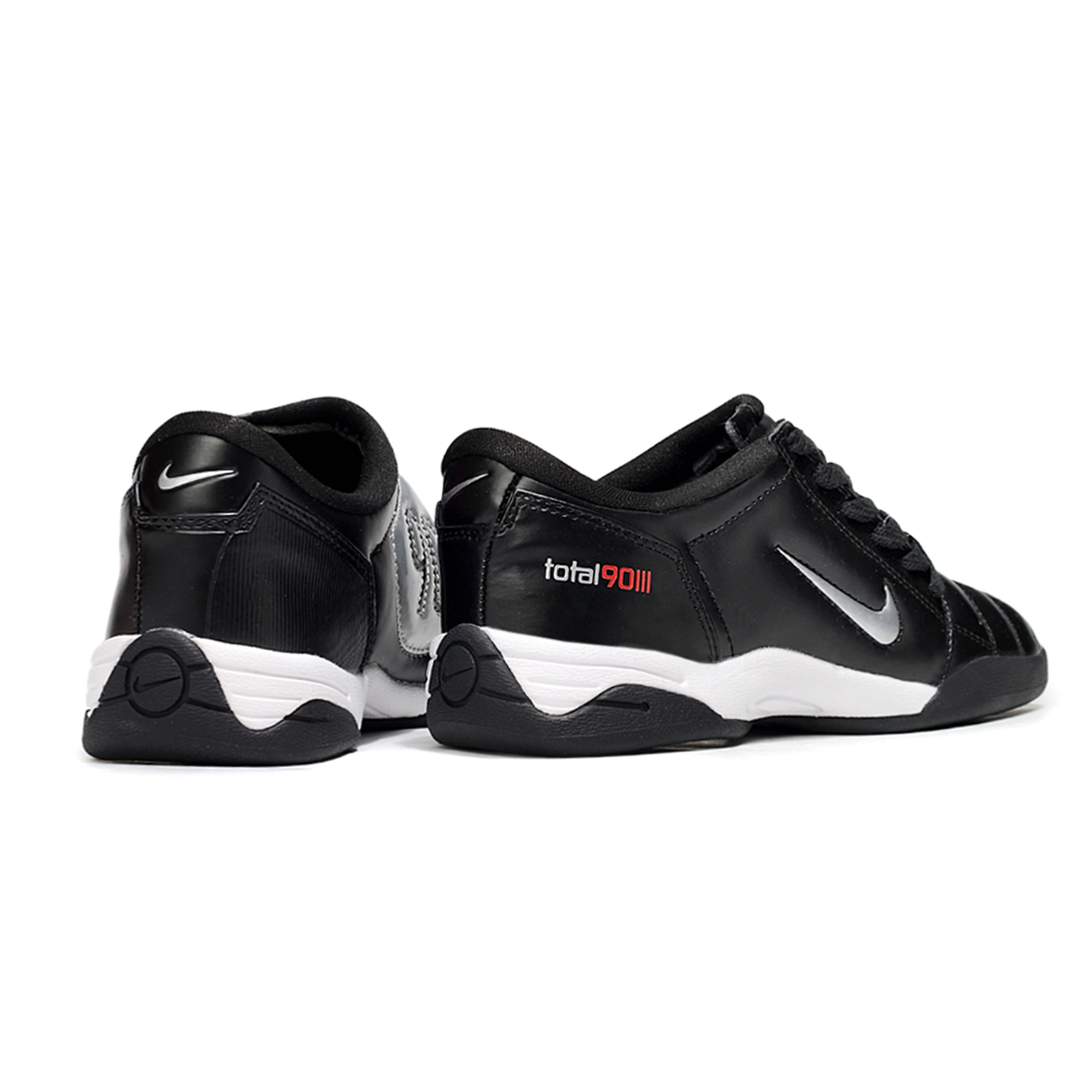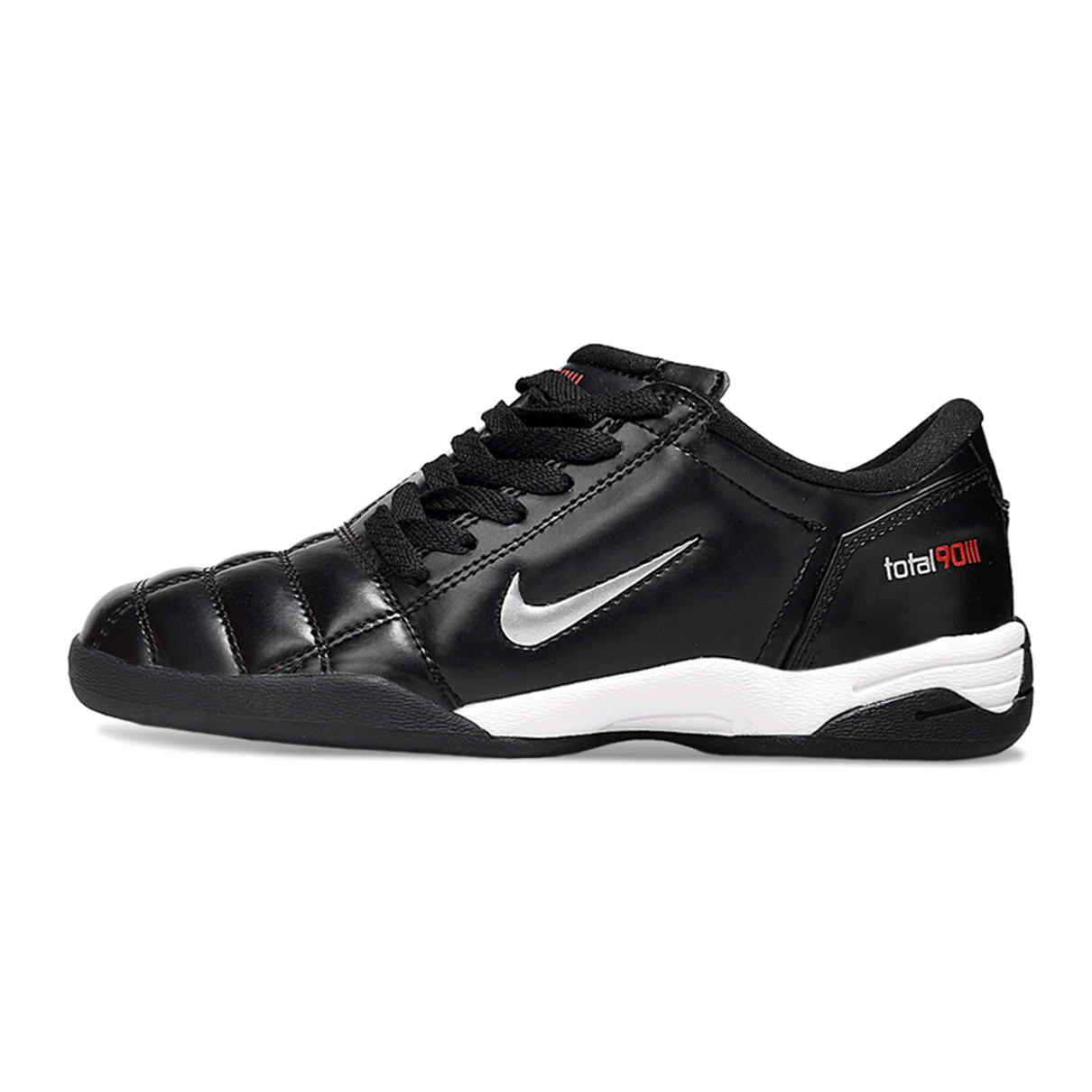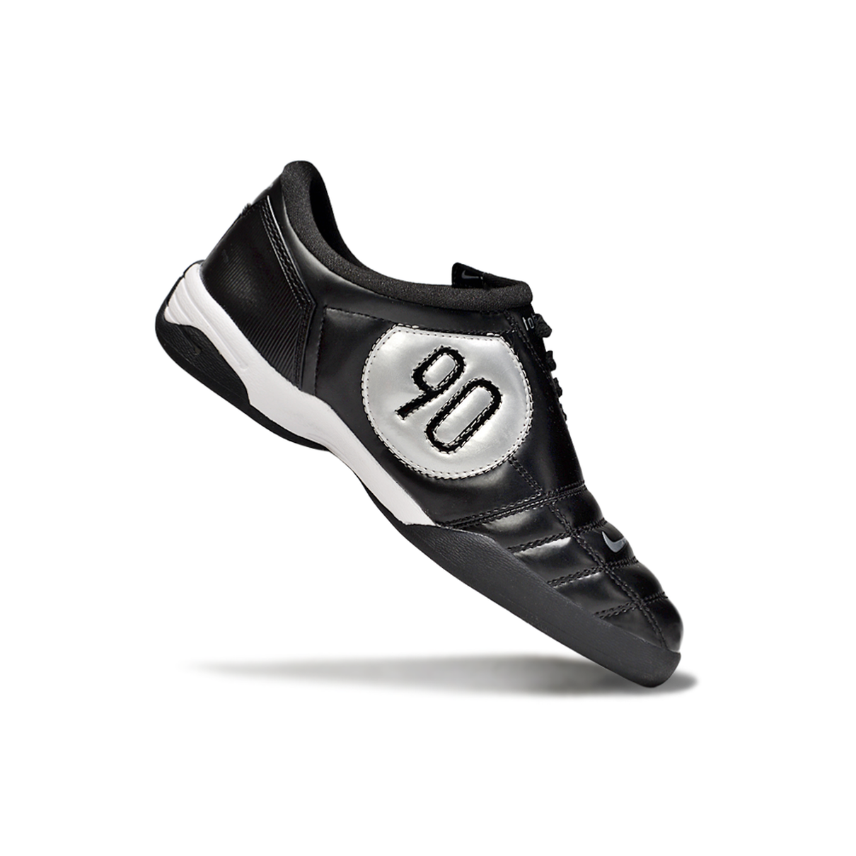 A Nike Total 90 IC em preto com detalhes prateados oferece uma combinação perfeita de desempenho e estilo para os jogadores de futsal que buscam controle de bola superior e presença marcante.
