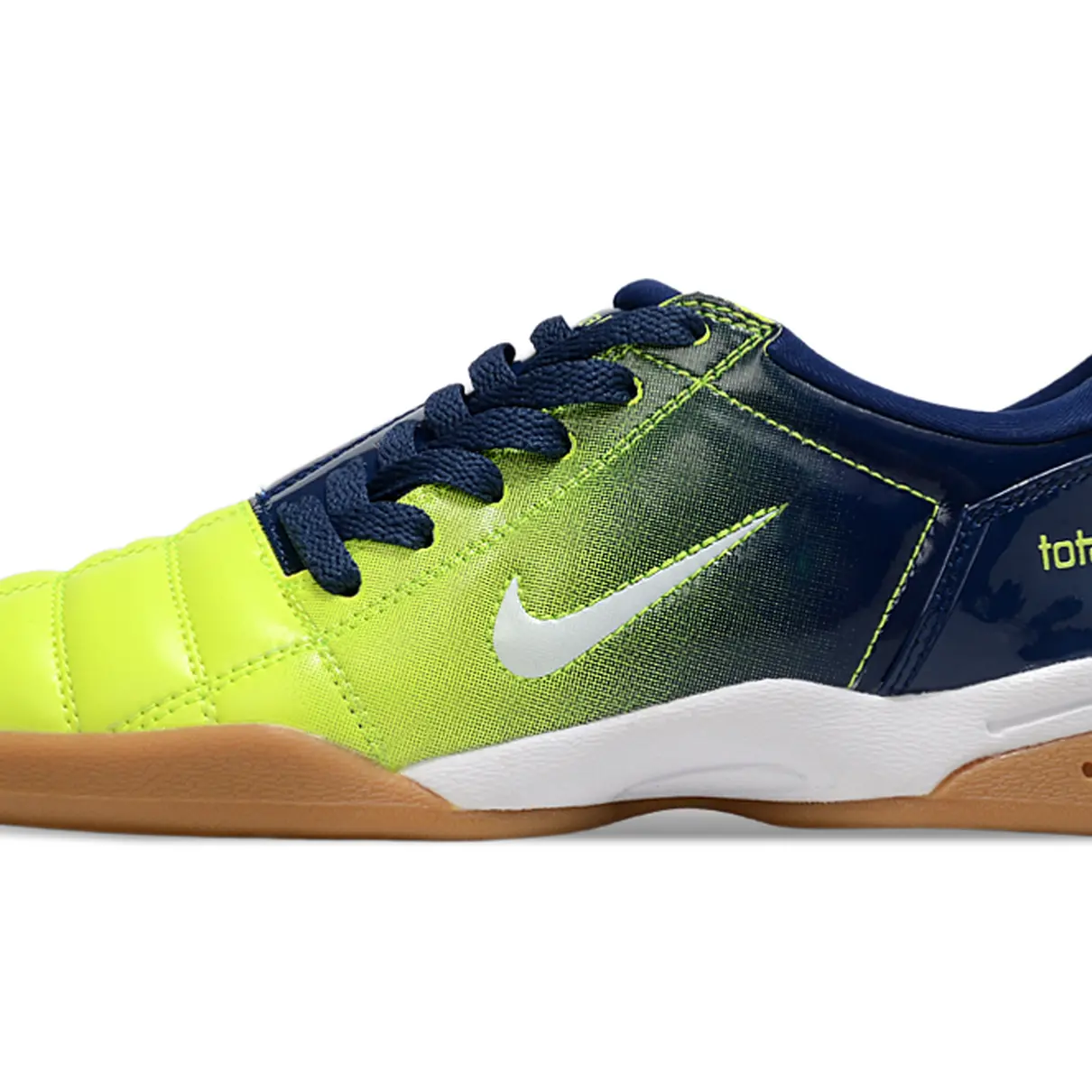 Com design vibrante em verde e azul, esta edição da Total 90 IC combina estilo retrô e performance moderna, sendo ideal para jogadores que querem reviver a essência das quadras com qualidade Nike.