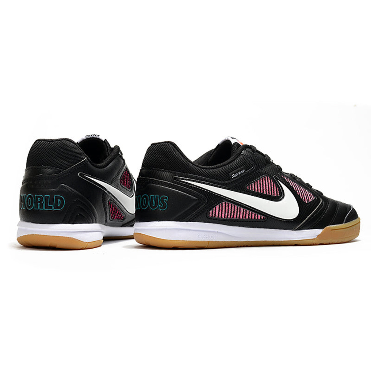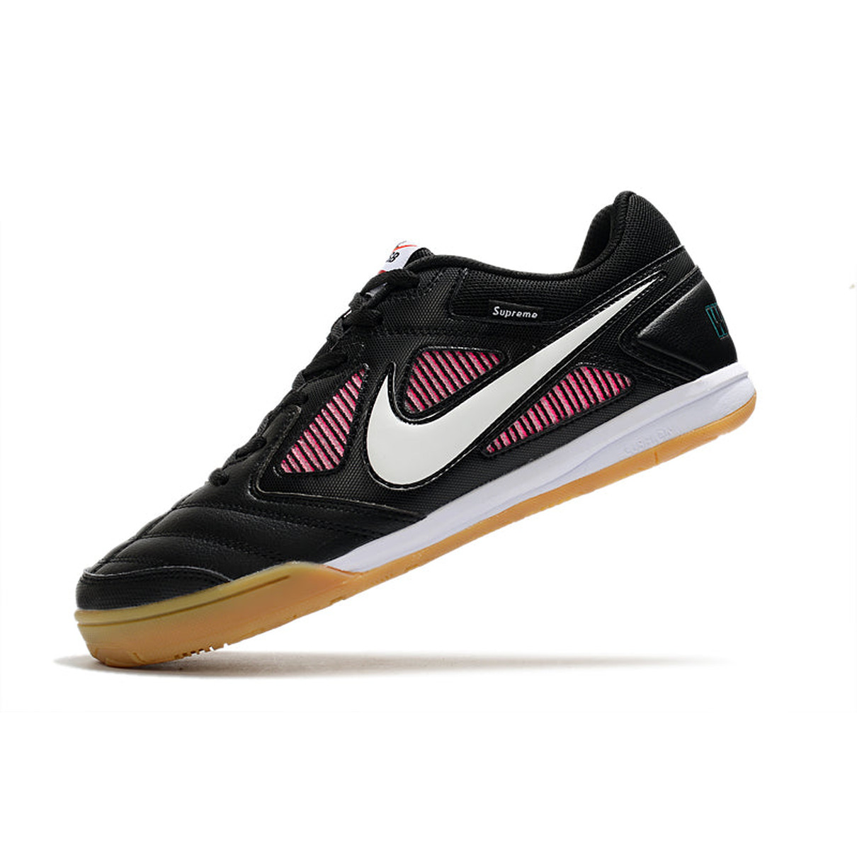 A chuteira Futsal Supreme X Nike SB Gato IC em preto, branco e rosa é uma combinação única de estilo e desempenho para os jogadores que buscam se destacar nas quadras de futsal. Esta colaboração entre Supreme e Nike SB combina o prestígio da marca com uma estética arrojada e moderna, garantindo conforto, durabilidade e uma aparência que chama a atenção em qualquer ambiente esportivo.