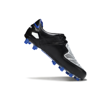 Com um design moderno nas cores preta, branca e azul, esta chuteira combina estilo e desempenho, garantindo performance completa em cada partida.