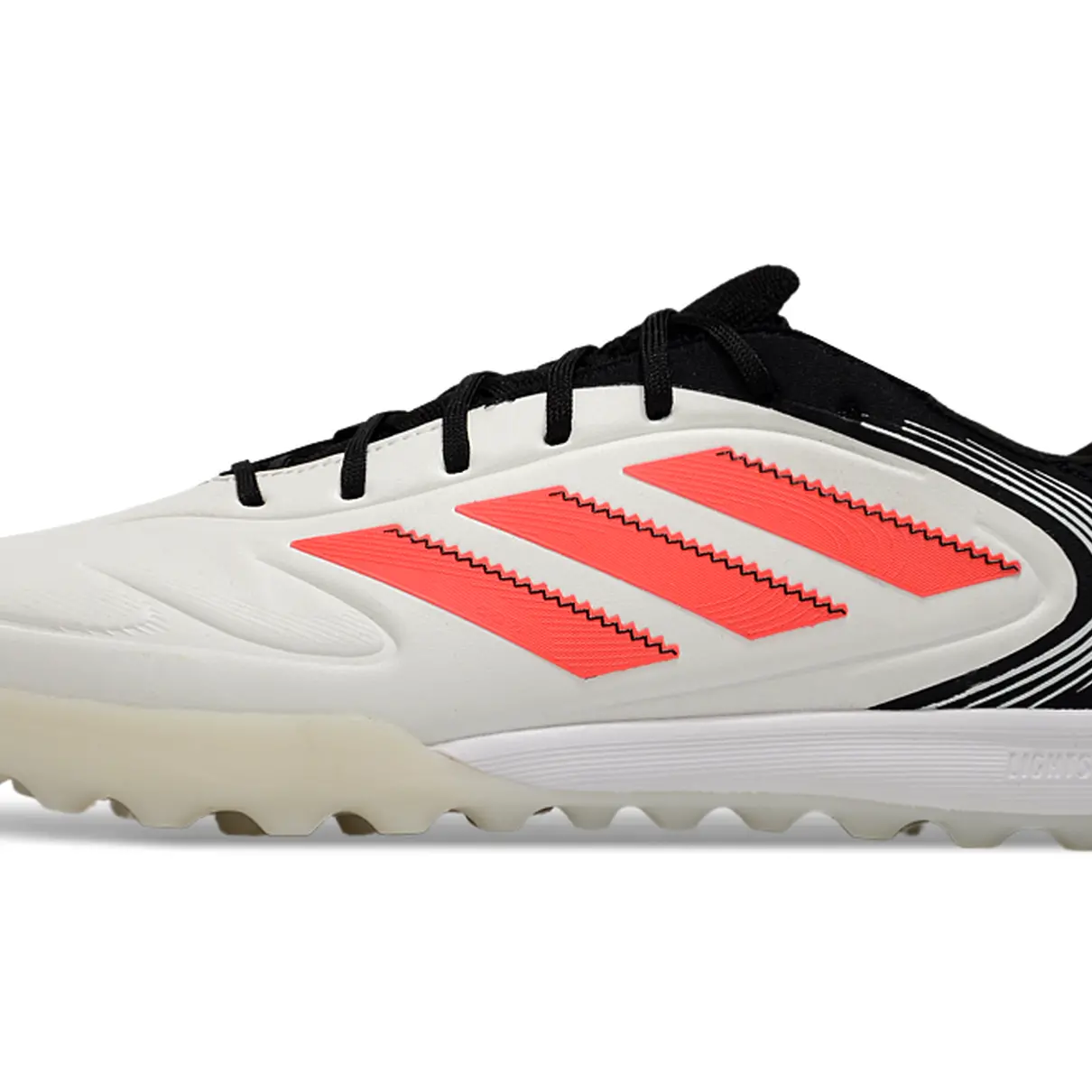 Chuteira Society Adidas Copa Pure.1 TF Branca, Preta e Laranja