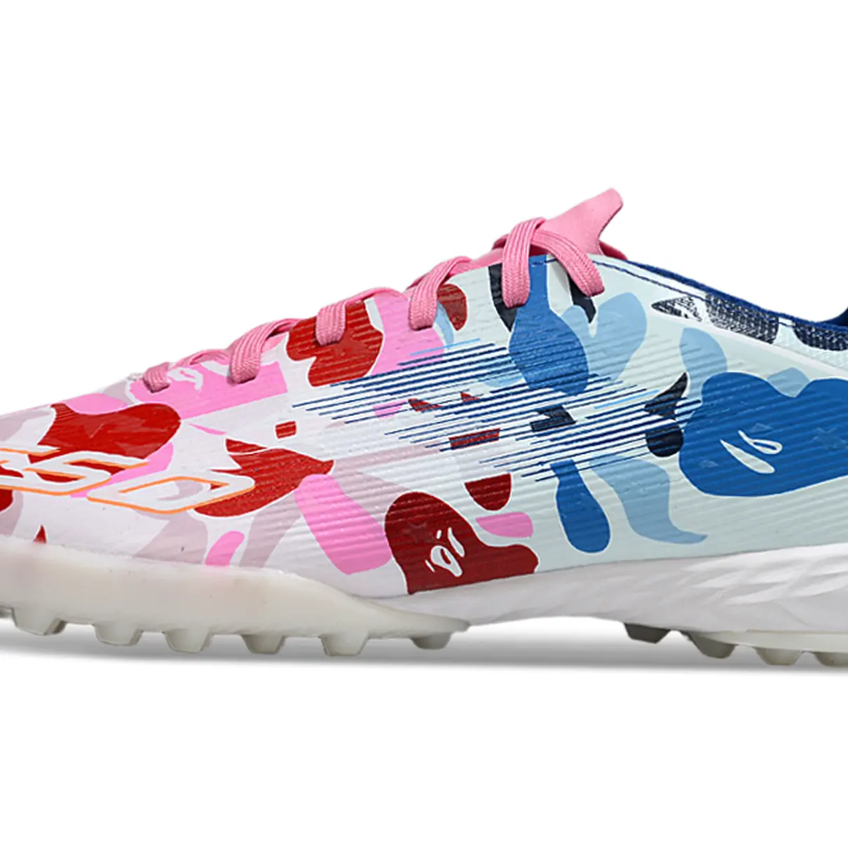 Chuteira Society Adidas F50 TF Branca, Rosa e Azul “BAPE”
