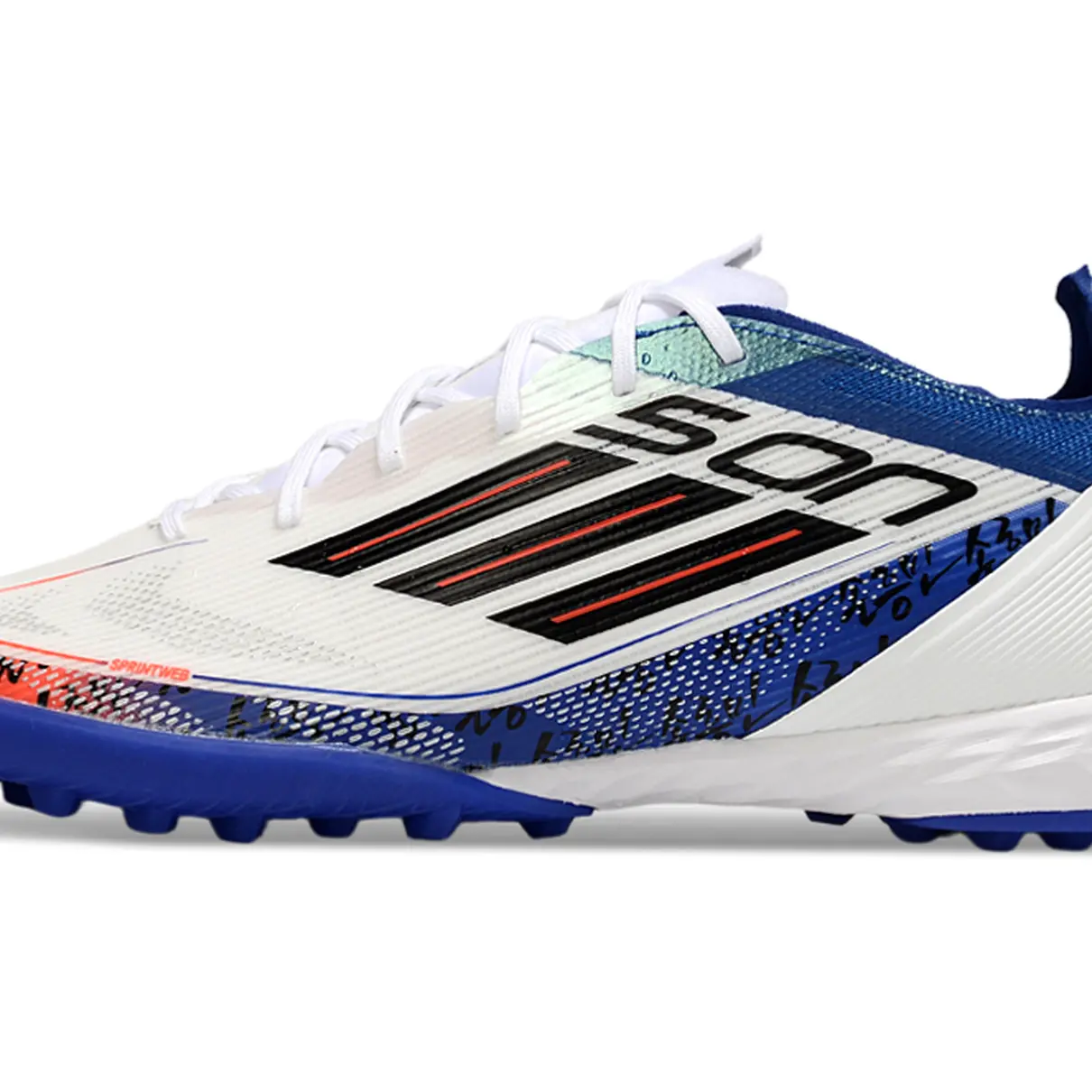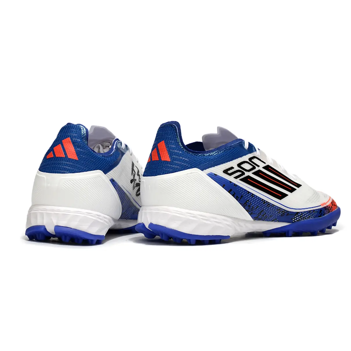 Chuteira Society Adidas F50 TF Branco, Azul e Laranja