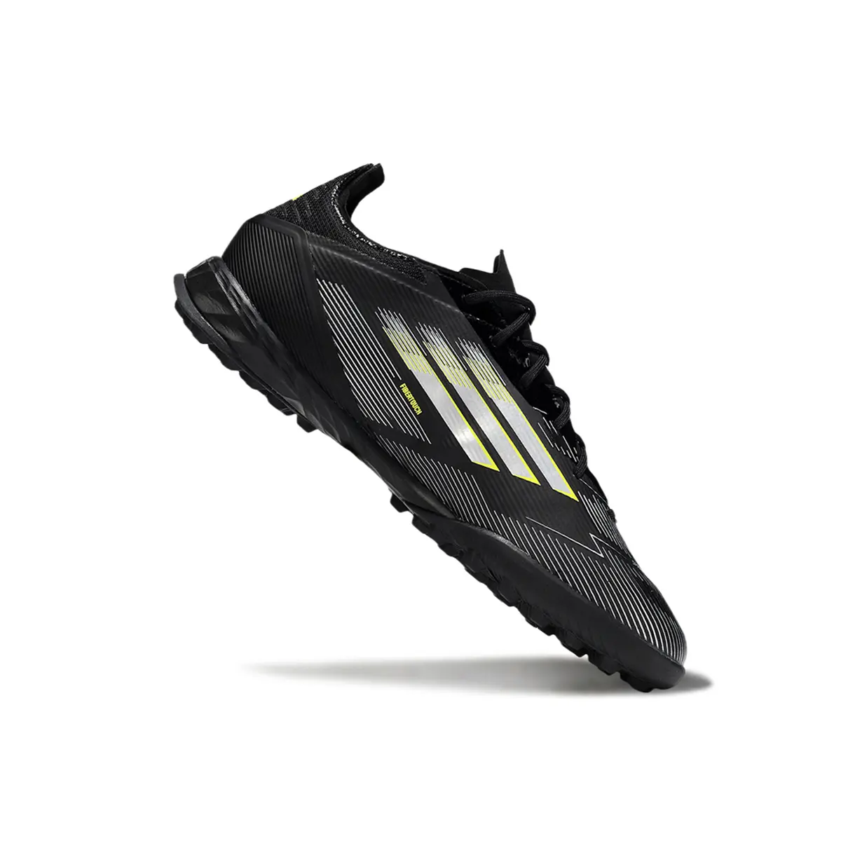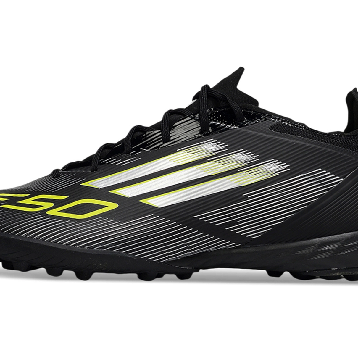 A Adidas F50 TF "Electric Stealth" chega com um visual agressivo e tecnológico, combinando o preto fosco com detalhes em verde elétrico que transmitem velocidade e ousadia. Ideal para jogadores rápidos, criativos e que gostam de se destacar com personalidade dentro de campo.