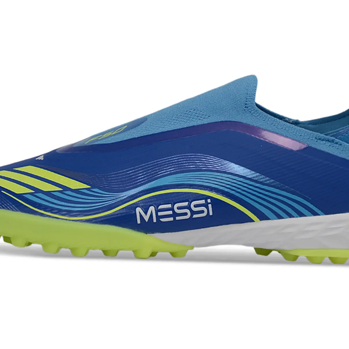 Chuteira Society Adidas F50+ TF Azul e Verde – Messi