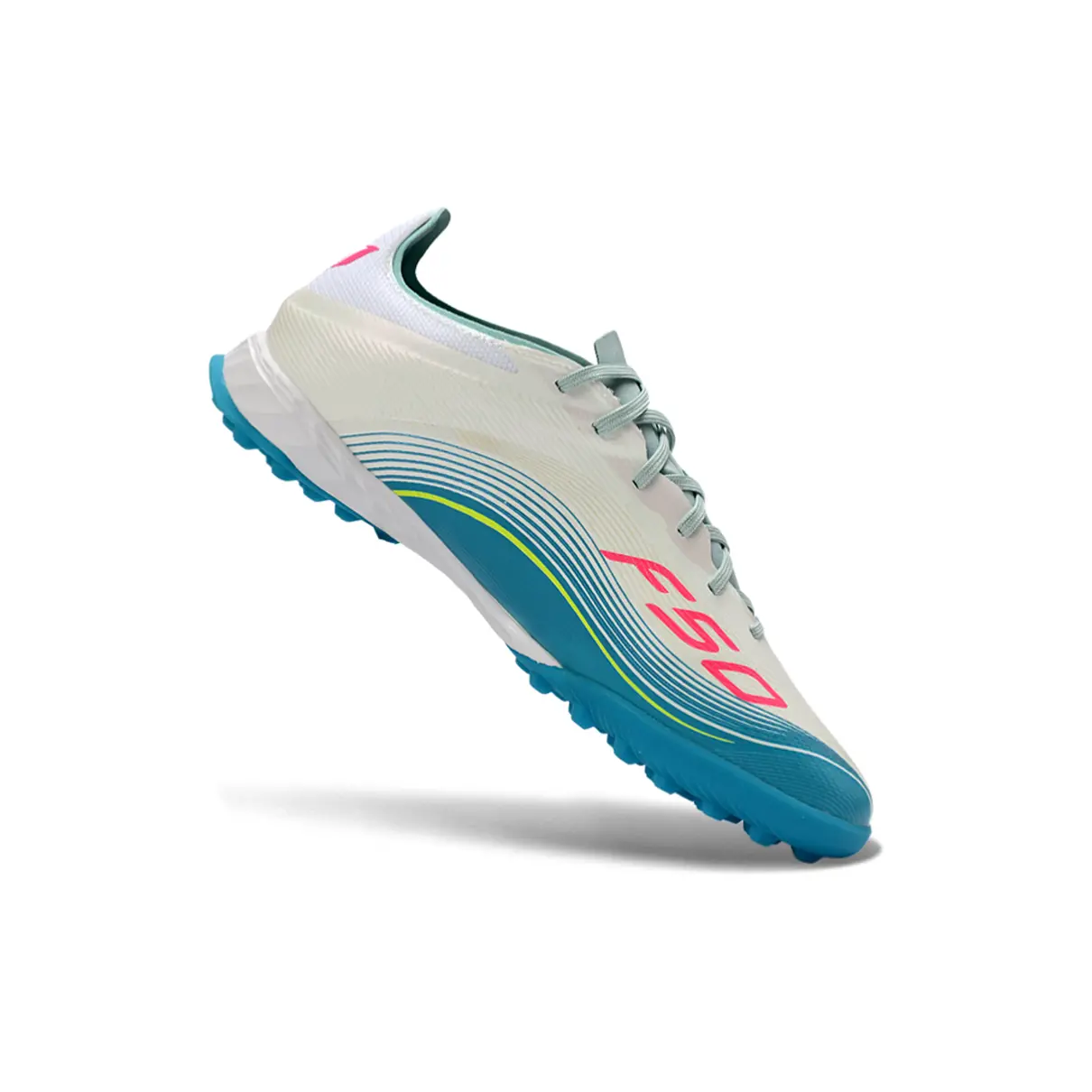 A Chuteira Society Adidas F50 TF Bege, Azul e Rosa foi desenvolvida para jogadores que priorizam velocidade, agilidade e controle de bola em partidas de futebol society. Com um design moderno e cores vibrantes, o modelo segue a tradição da linha F50, conhecida por oferecer leveza e explosão nas jogadas rápidas.