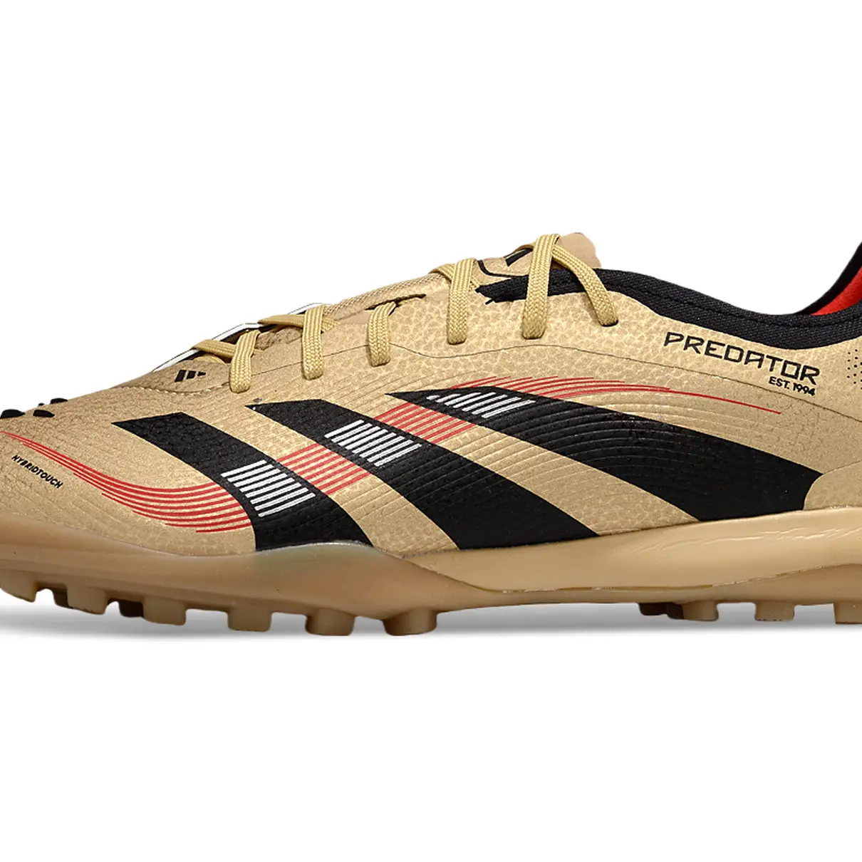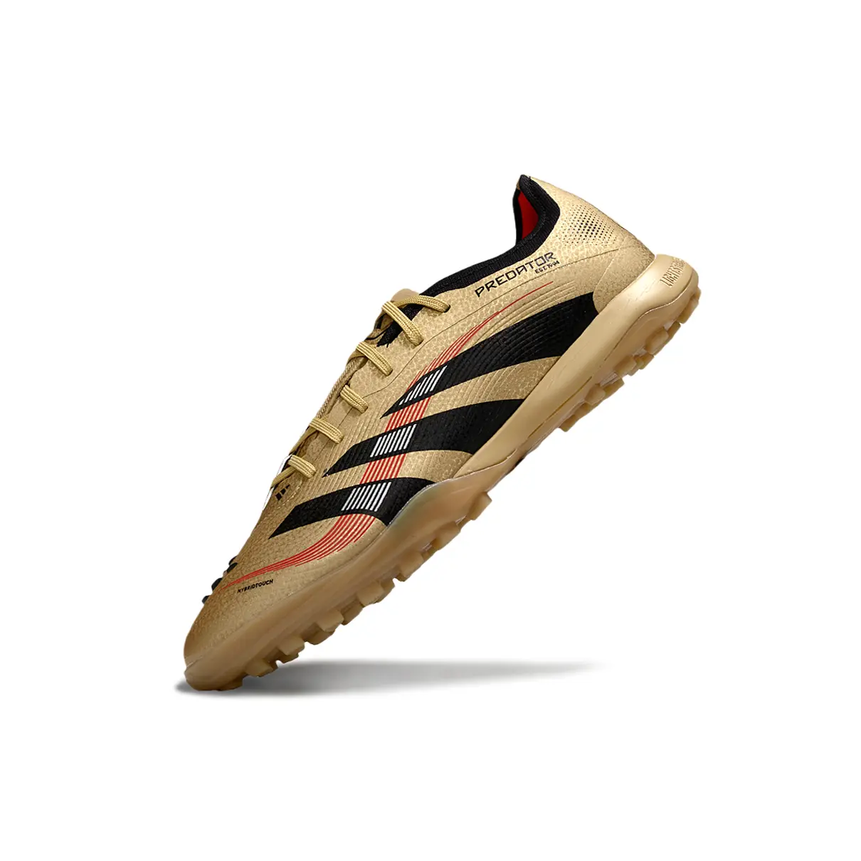 Domine o jogo com presença e sofisticação. A Predator Elite TF Dourado e Preto entrega performance de alto nível com um visual imponente que impõe respeito em campo. O dourado no cabedal destaca sua ousadia, enquanto os detalhes em preto completam o design com agressividade e classe.