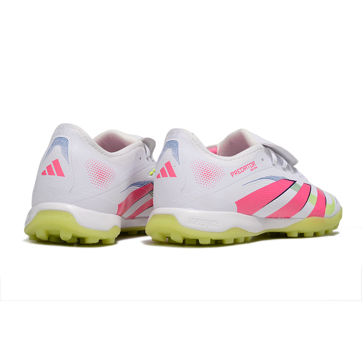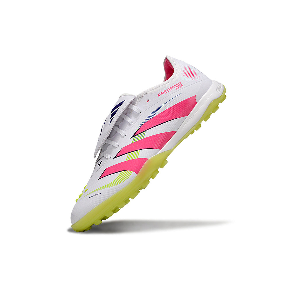 A Adidas Predator League Elite TF Branco, Rosa e Verde "Celestial Victory" é a chuteira ideal para quem busca dominar o jogo com estilo, controle e performance. Com um design vibrante e moderno, essa edição especial "Celestial Victory" combina a elegância do branco com os detalhes energéticos do rosa e verde, criando uma presença marcante em campo.