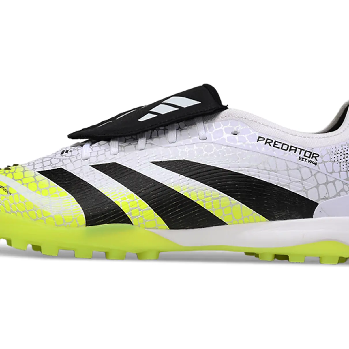 Seu cabedal texturizado favorece o domínio da bola, enquanto o amortecimento interno garante conforto durante toda a partida. O solado TF foi desenvolvido para oferecer aderência e tração em gramados sintéticos, proporcionando confiança em cada movimento.