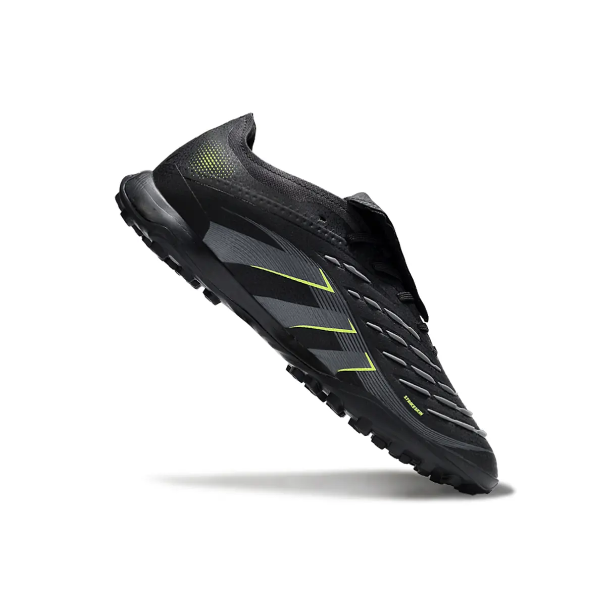 Com cabedal têxtil de alta performance e a tecnologia Zone Skin, ela oferece texturas em alto-relevo nas zonas de contato, garantindo grip superior e controle preciso da bola. O solado TF (Turf), com travas baixas e bem distribuídas, entrega tração firme e segurança nos cortes rápidos e nas mudanças de direção.