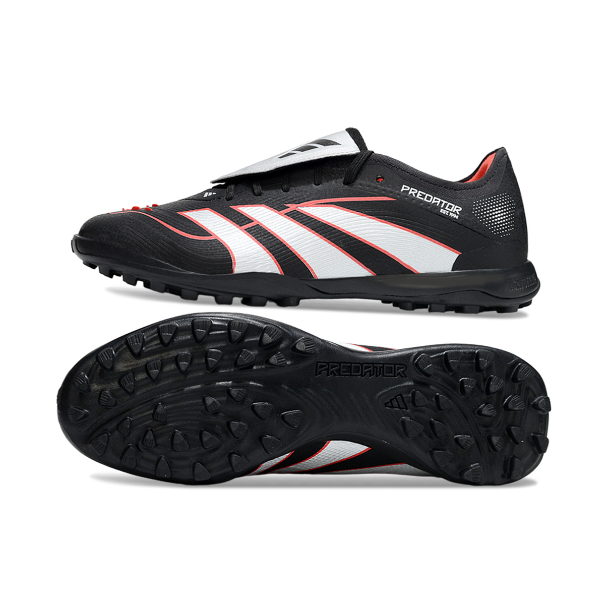 Chuteira Society Adidas Predator Tongue Elite 25 TF – Preta, Vermelha e Prata