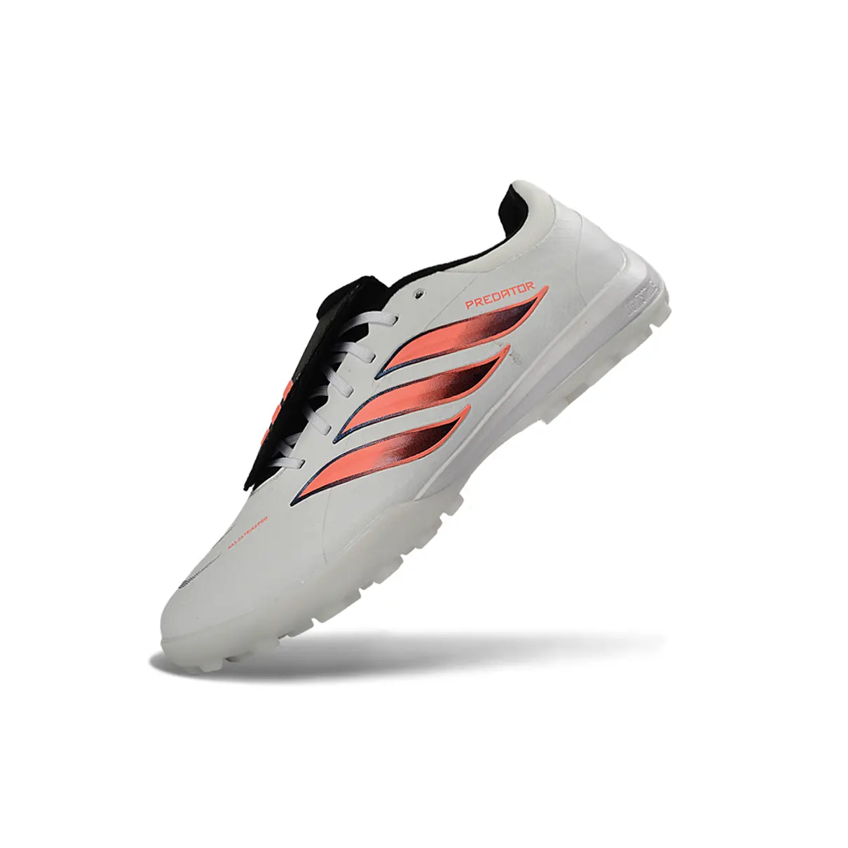 A Chuteira Society Adidas Predator Tounge Elite 26 TF Branco, Laranja e Preto foi desenvolvida para jogadores que buscam controle de bola preciso, estabilidade e conforto duradouro em gramados sintéticos. Com um visual moderno e impactante nas cores branco, laranja e preto, esse modelo combina estilo agressivo com tecnologias que favorecem o desempenho em partidas de society.