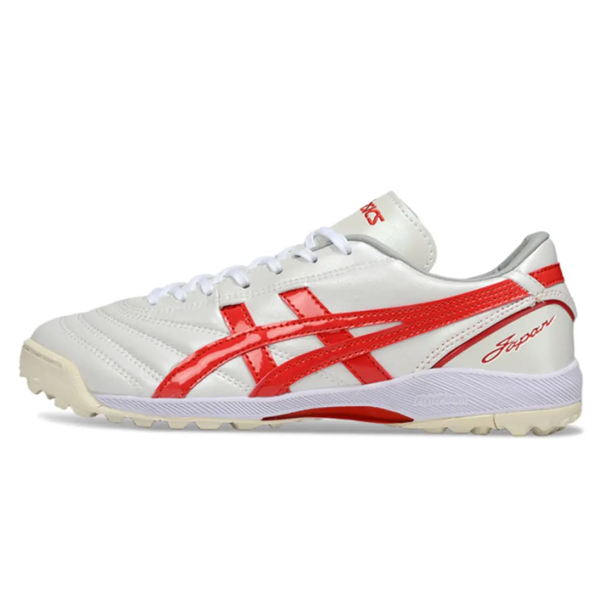 Com visual marcante em branco com detalhes vermelhos, a Asics Japan TF traz design limpo e elegante, ideal para jogadores que valorizam performance e presença em campo. O cabedal é produzido em material sintético de alta durabilidade, garantindo ajuste firme, conforto e excelente controle de bola.