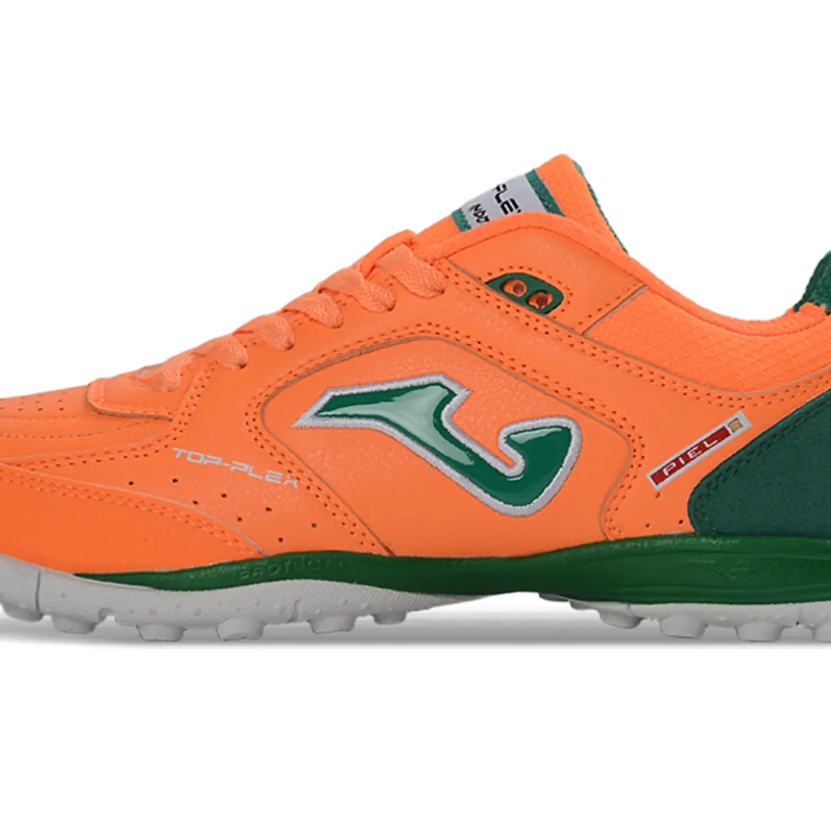 A Chuteira Society Joma Top Flex Laranja e Verde foi desenvolvida para jogadores que desejam conforto, controle de bola e resistência em gramados sintéticos. Com combinação vibrante nas cores laranja e verde, esse modelo entrega estilo marcante aliando performance e segurança no jogo de society.