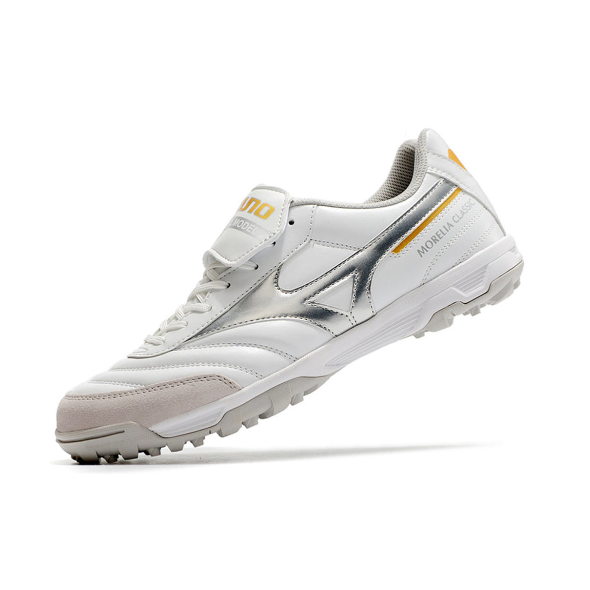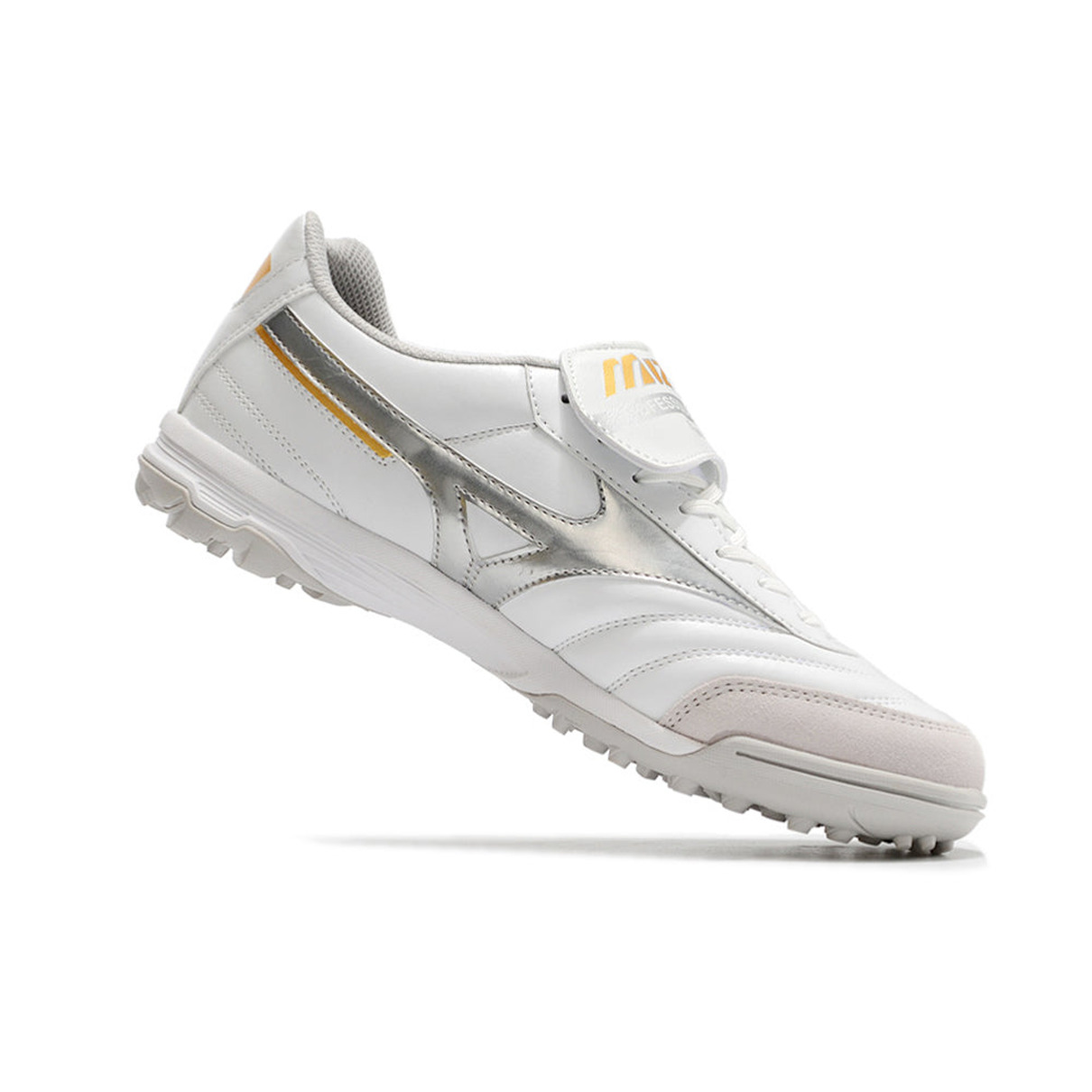 Chuteira de Society Mizuno Morelia 3 TF Branca e Prata "Beta Shining"