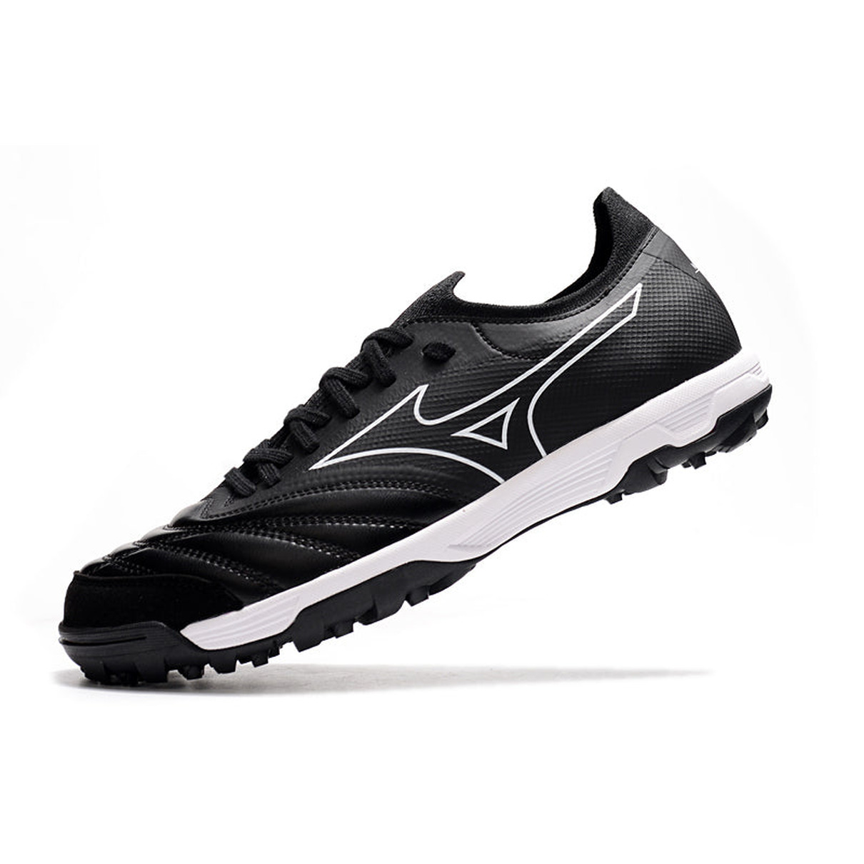 Chuteira de Society Mizuno Morelia Neo Beta TF Preta e Branca "Origami Pack"