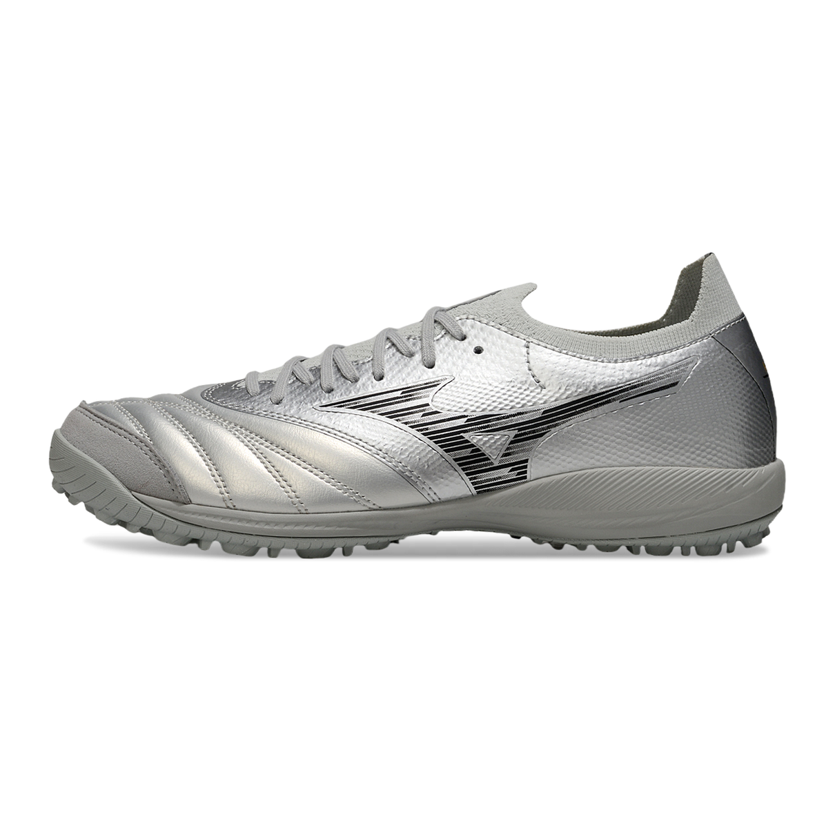 Inspirada na tradição da linha Morelia, a Mizuno Morelia Neo Sala TF une conforto clássico, visual moderno e tecnologia eficiente para o jogo em gramados sintéticos. Nessa versão prata, o modelo ganha destaque com um visual sofisticado e marcante, ideal para quem gosta de se impor com elegância em campo.