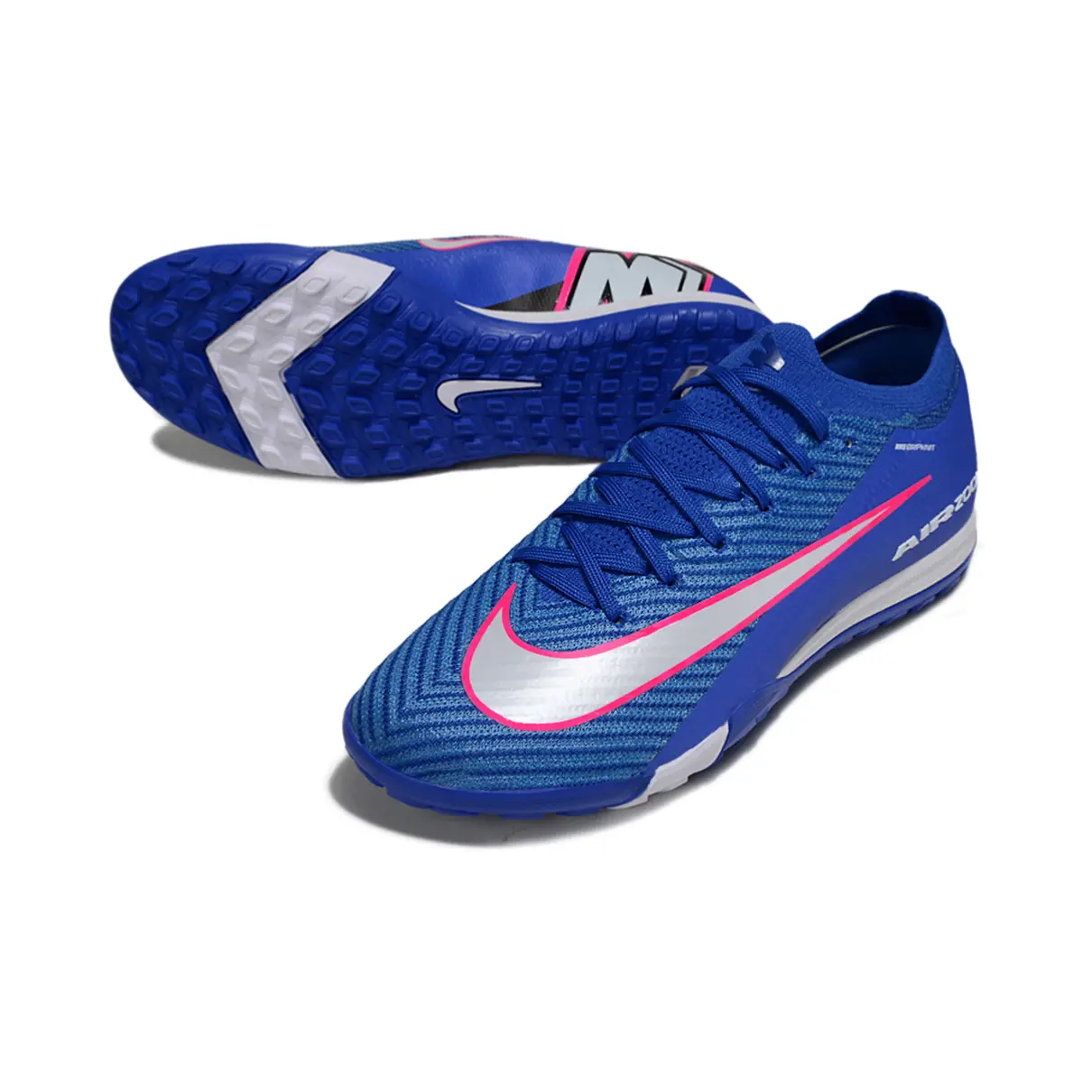 Equipada com a unidade Zoom Air, oferece amortecimento responsivo e impulsão em cada passo. O cabedal em Flyknit texturizado garante ajuste firme, toque preciso e excelente controle da bola, enquanto o solado em borracha com travas baixas proporciona aderência e estabilidade durante arrancadas e mudanças de direção.