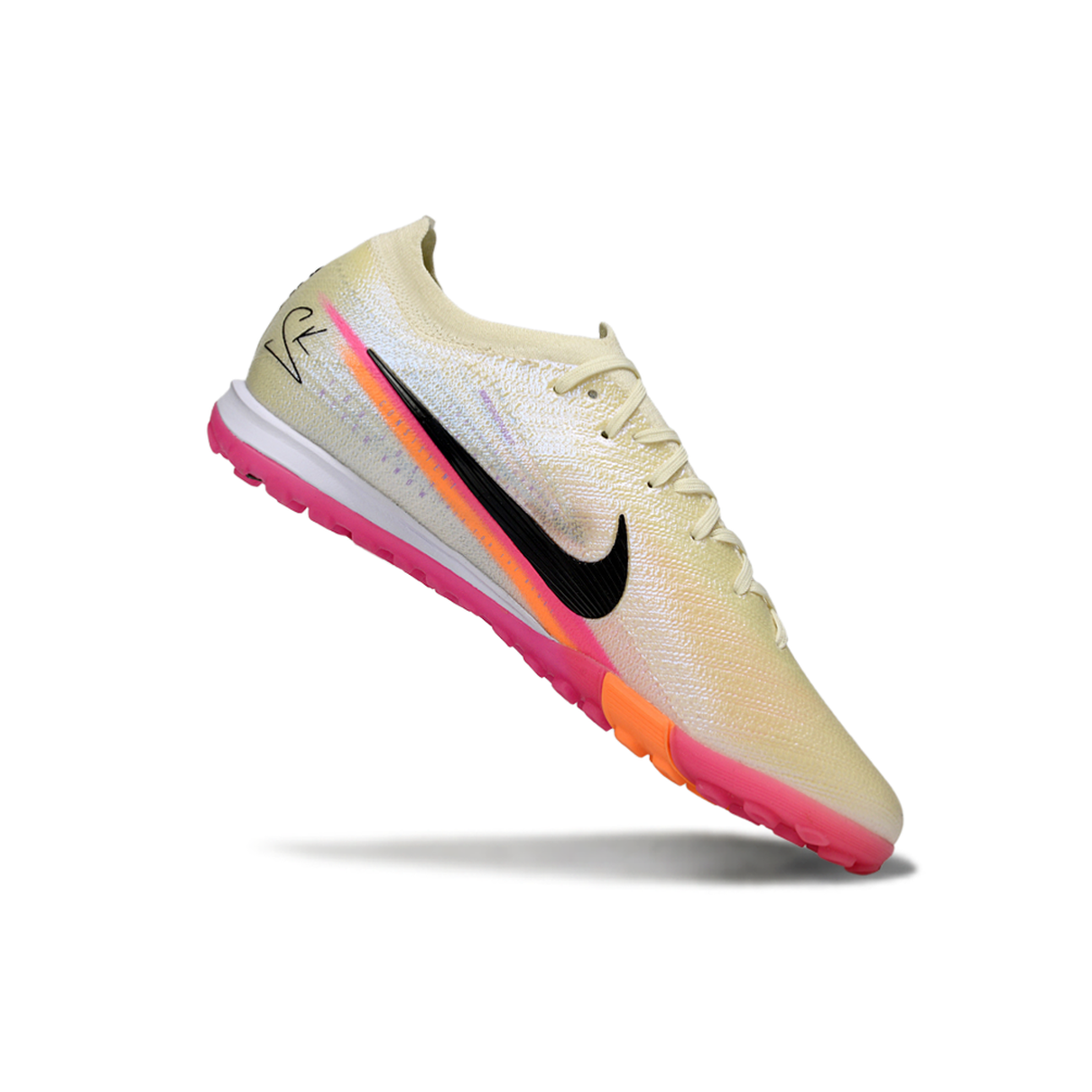 O solado TF com travas baixas garante tração superior e estabilidade em superfícies sintéticas, permitindo giros, paradas e arranques com confiança. Com o design moderno nas cores bege, rosa e laranja, esta chuteira une performance e estilo vibrante, perfeita para jogadores que se destacam com técnica e velocidade.
