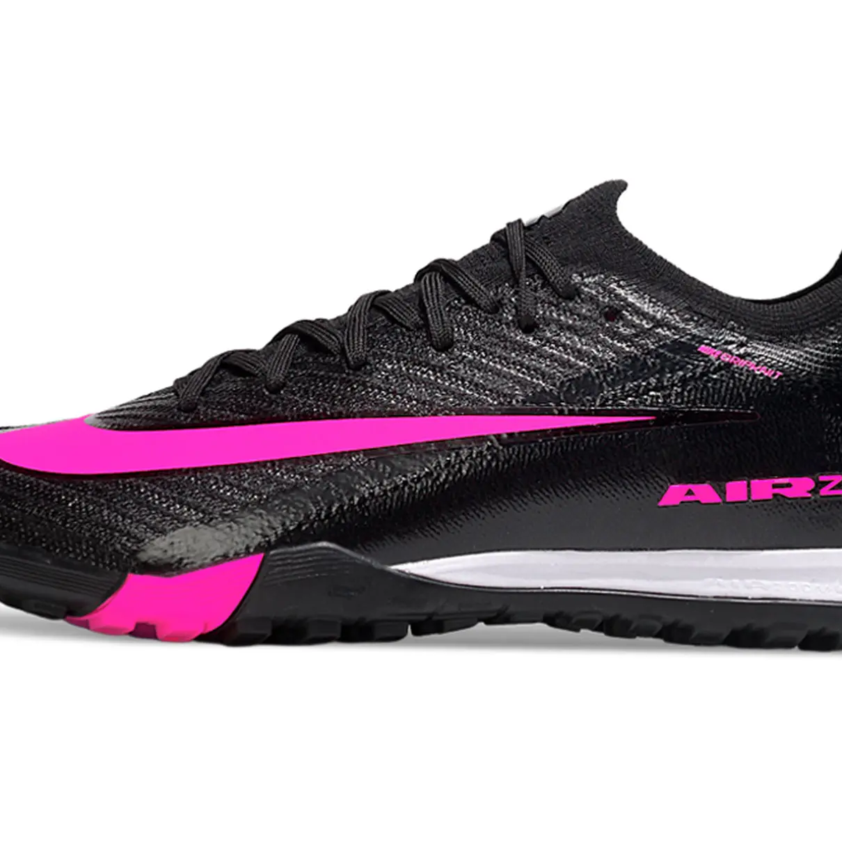 A entressola conta com a tecnologia Air Zoom, que proporciona amortecimento responsivo e retorno de energia, aumentando a eficiência em sprints e mudanças de direção. Já o solado em borracha no padrão TF (Turf), com microtravas baixas, assegura tração consistente, aceleração rápida e estabilidade em movimentos intensos.