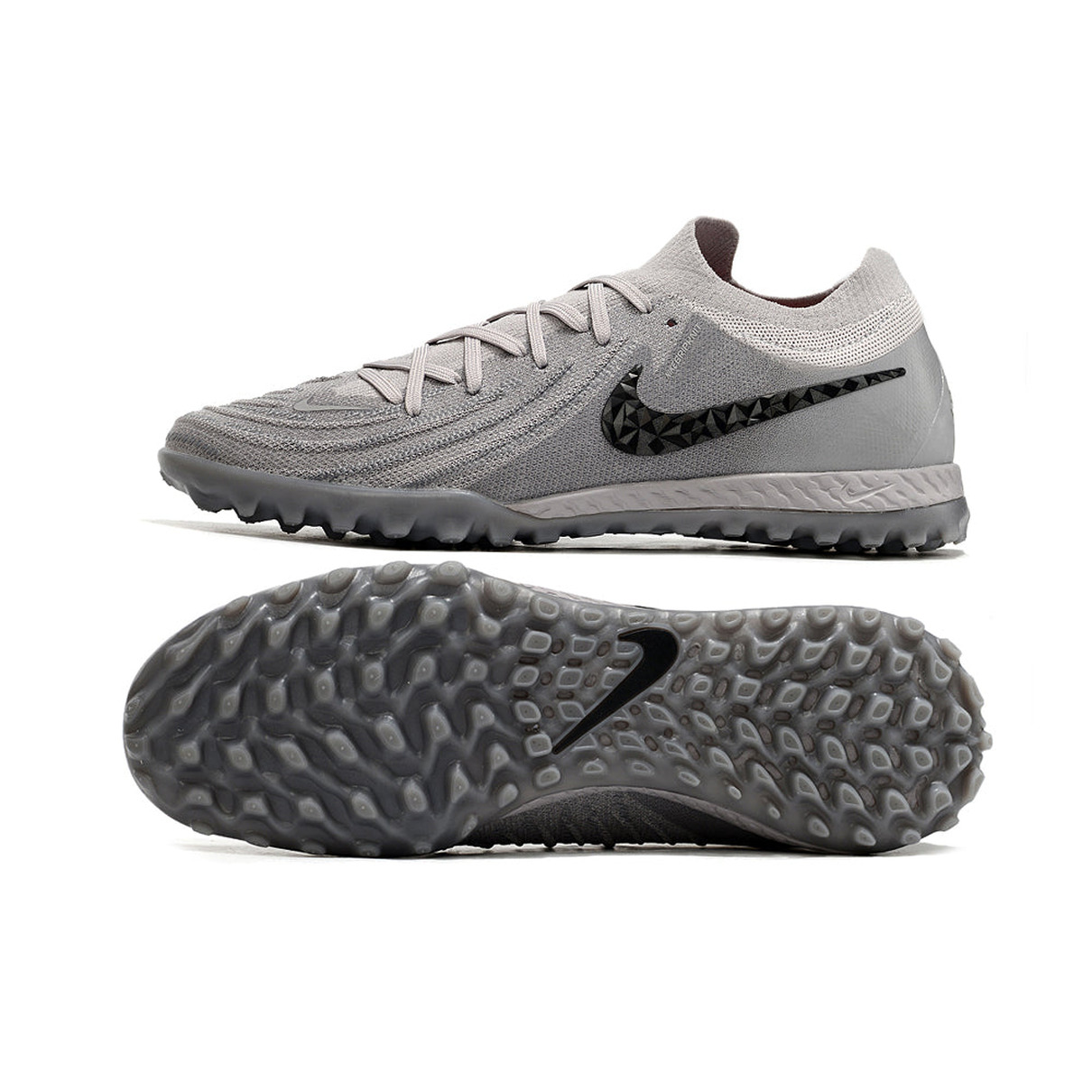 Chuteira Society Nike Phantom GX 2 Elite TF Cinza e Preta "Rising Gem Pack"
