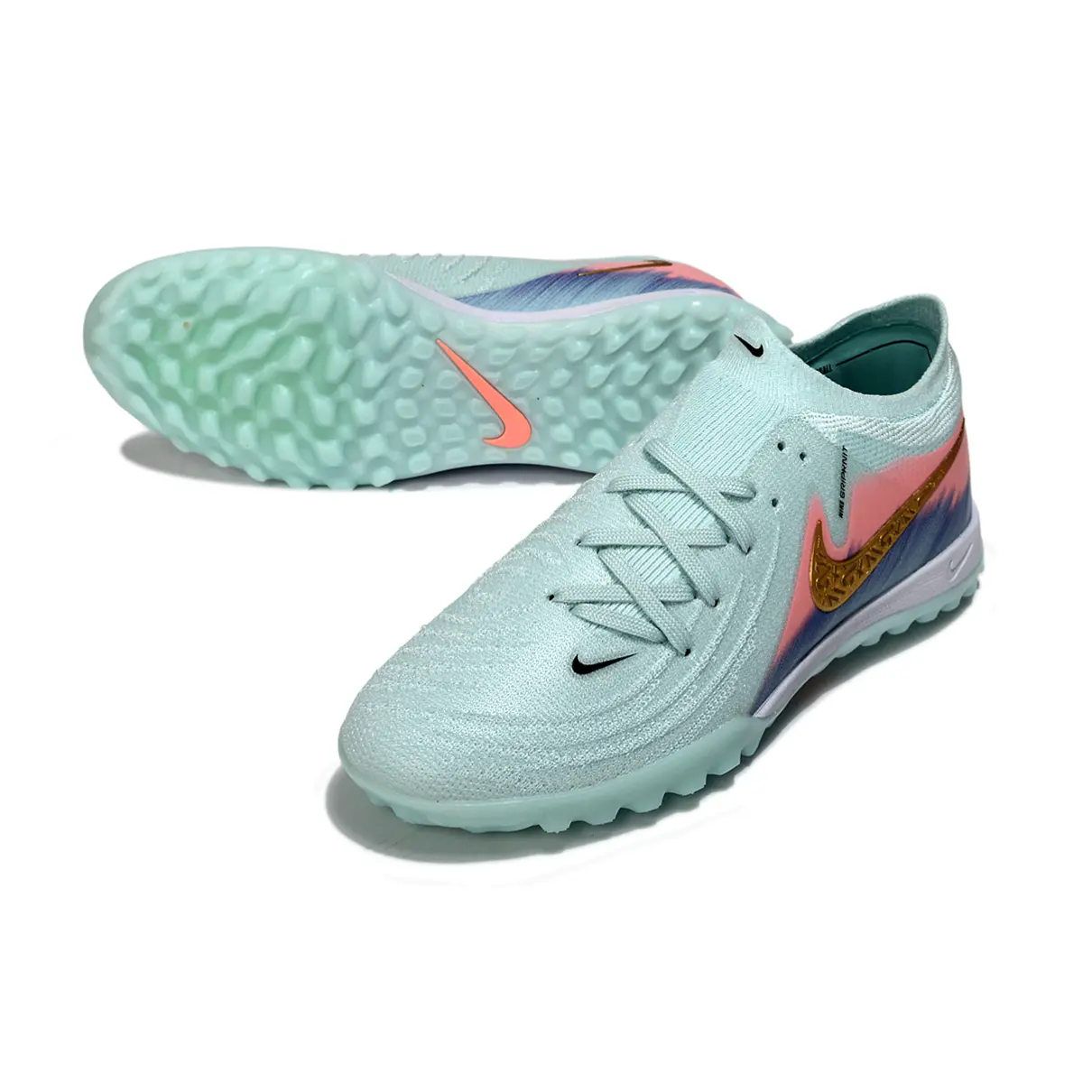 A Chuteira Society Nike Phantom GX 2 Elite TF Verde, Rosa, Azul e Dourado foi criada para jogadores que buscam precisão, controle e explosão de jogadas em gramados sintéticos. Com um design moderno e vibrante, ela combina tecnologia avançada e estilo marcante, perfeita para quem quer se destacar em campo.