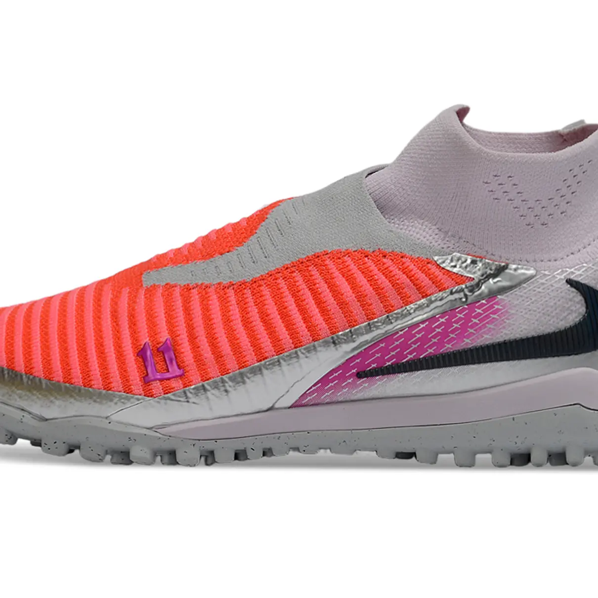 Chuteira Society Nike Phantom 6 DF Elite TF – Cinza, Prata e Laranja