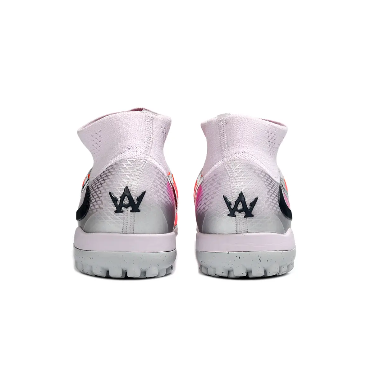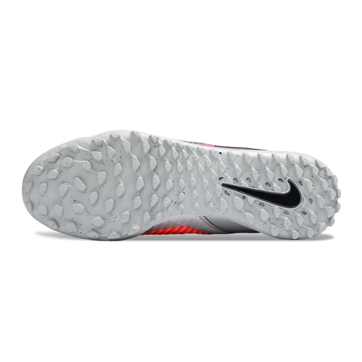 Solado TF (Turf) Premium: Borracha de alta durabilidade com travas multidirecionais desenhadas para oferecer tração máxima em grama sintética.