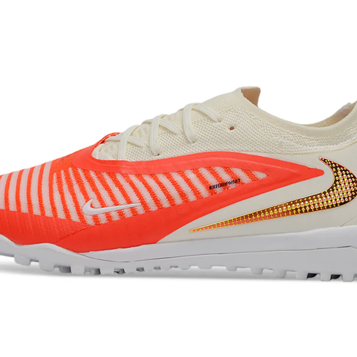 Chuteira Society Nike Phantom GX 6 Elite TF – Branco, Laranja e Dourado