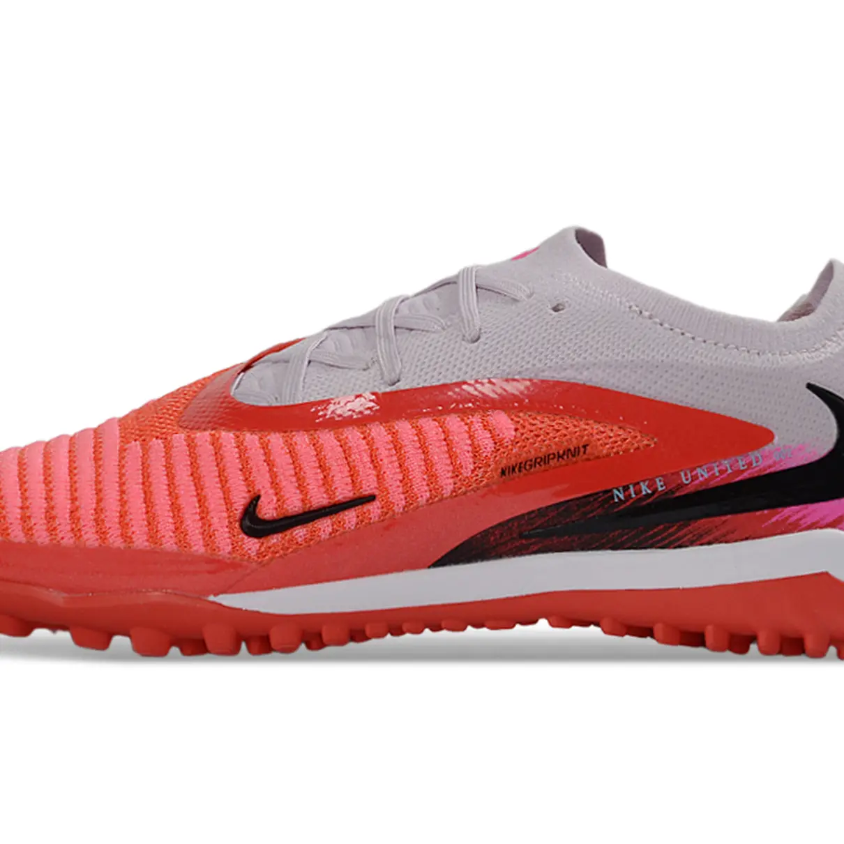 A Chuteira Society Nike Phantom GX 6 Elite TF Cinza e Vermelho “United” foi criada para jogadores que buscam controle de bola preciso, estabilidade e alto desempenho em gramados sintéticos. Com visual marcante na combinação cinza e vermelho, essa edição “United” entrega personalidade forte dentro de campo.
