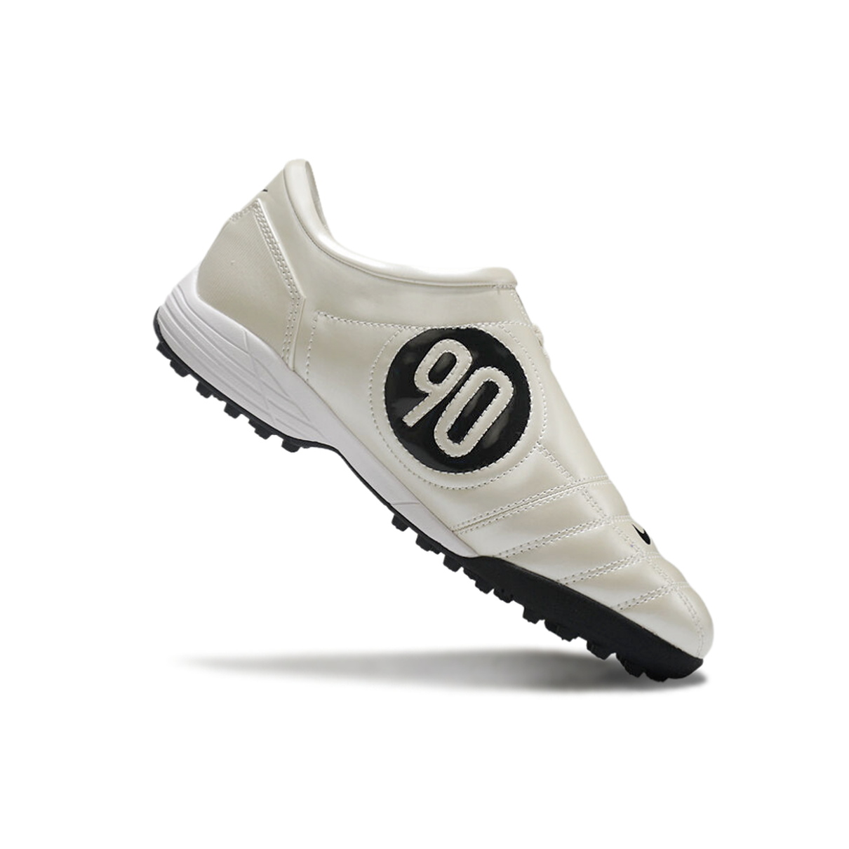 Sola TF (Turf): A sola foi especialmente desenvolvida para campos de grama sintética, com cravos distribuídos de forma estratégica para garantir máxima tração e controle. A Nike Total 90 TF proporciona aderência perfeita, permitindo que você execute dribles rápidos, arranques e mudanças de direção com total confiança.